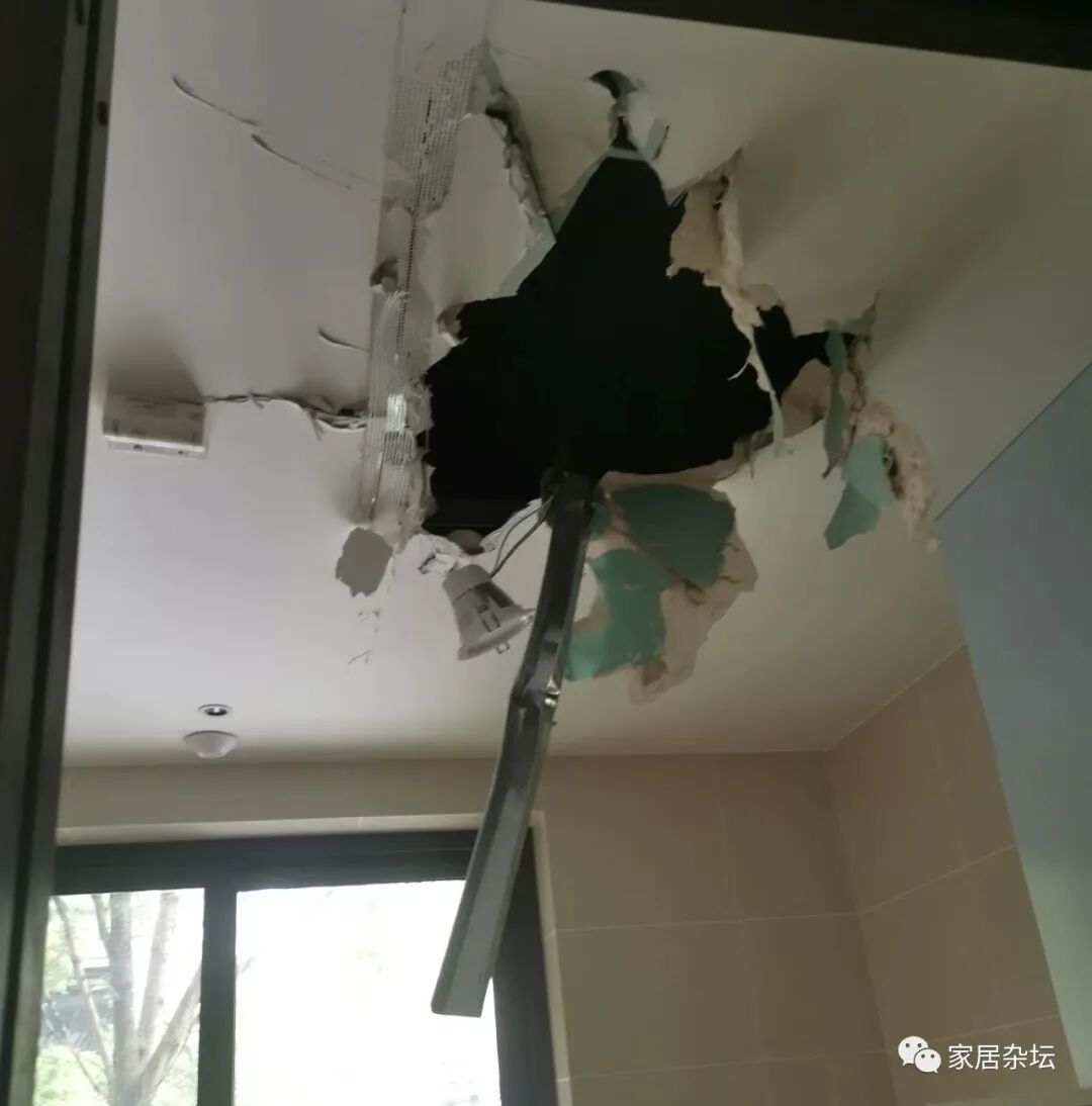 ③、石膏板吊顶的变形坍塌。这也是最严重的一种情况,这是由于石膏板受潮,最后导致整个吊顶慢慢向下坍塌。