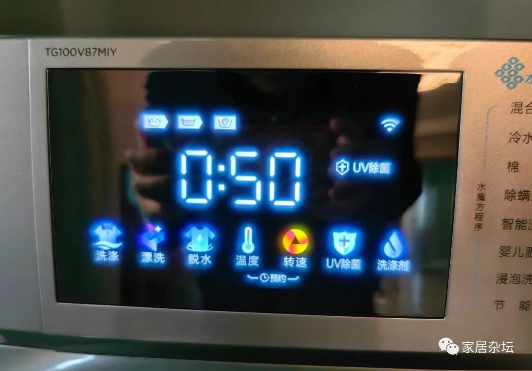 ②、智能功能也更强。例如可以预约洗衣服,提前把衣服扔里,然后预约好时间,到时间自动洗。例如还可以使用手机来进行控制等等各种各样的功能。