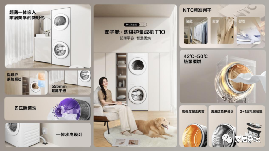 9月20日晚间,在主题为“在一起,两相宜”的2023年TCL洗衣机秋季新品发布会上,全球专业家电品牌TCL正式推出了TCL双子舱洗烘护集成机T10。这也是TCL深耕白家电领域多年,以深厚技术沉淀打造的又一款重磅产品。面对这款一体式设计的双滚筒产品,消费者第一眼往往会被其简约外观吸引,但双子舱T10洗衣机不止拥有高颜值,还搭载了众多硬核科技。
