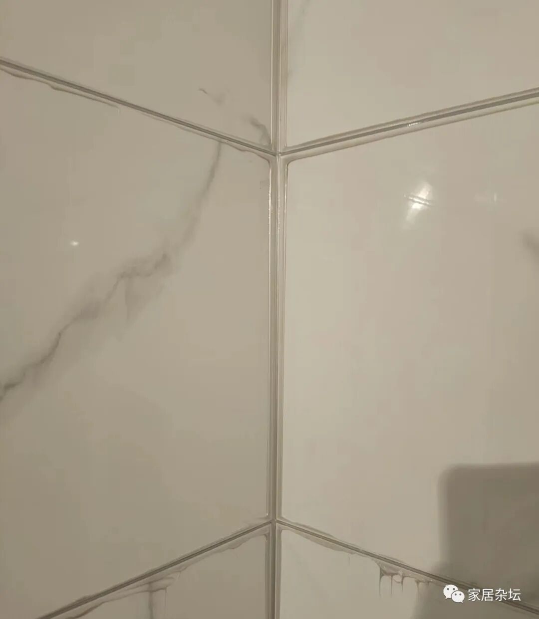 ③、缺点:美缝剂挤出后,湿化反应后导致美缝剂收缩,最终形成一道明显的凹槽,后期这些凹下去的砖缝就容易积灰,藏污纳垢,对施工工艺有要求。