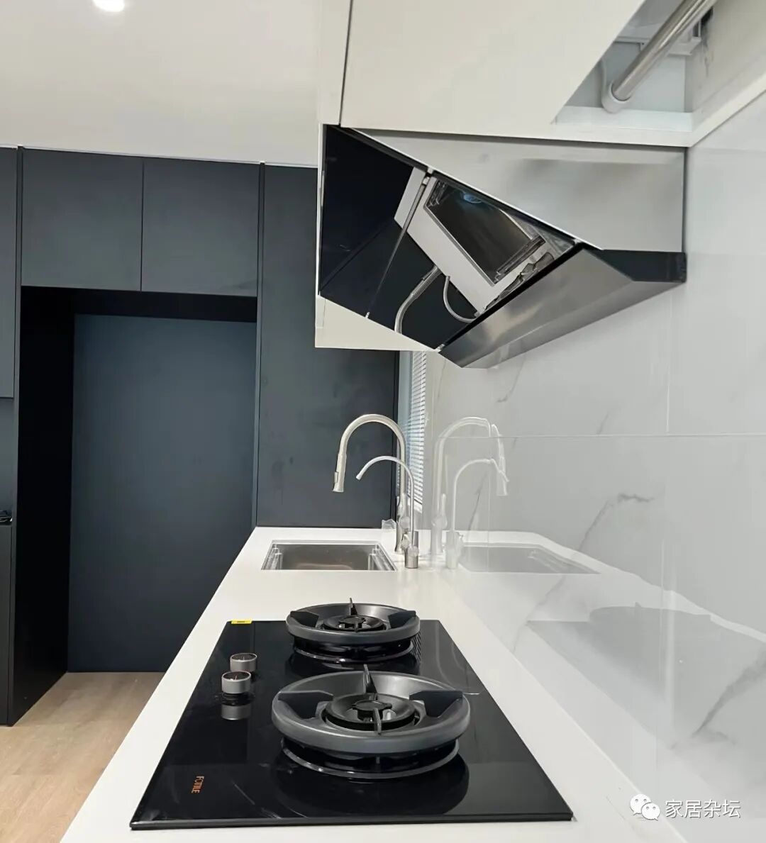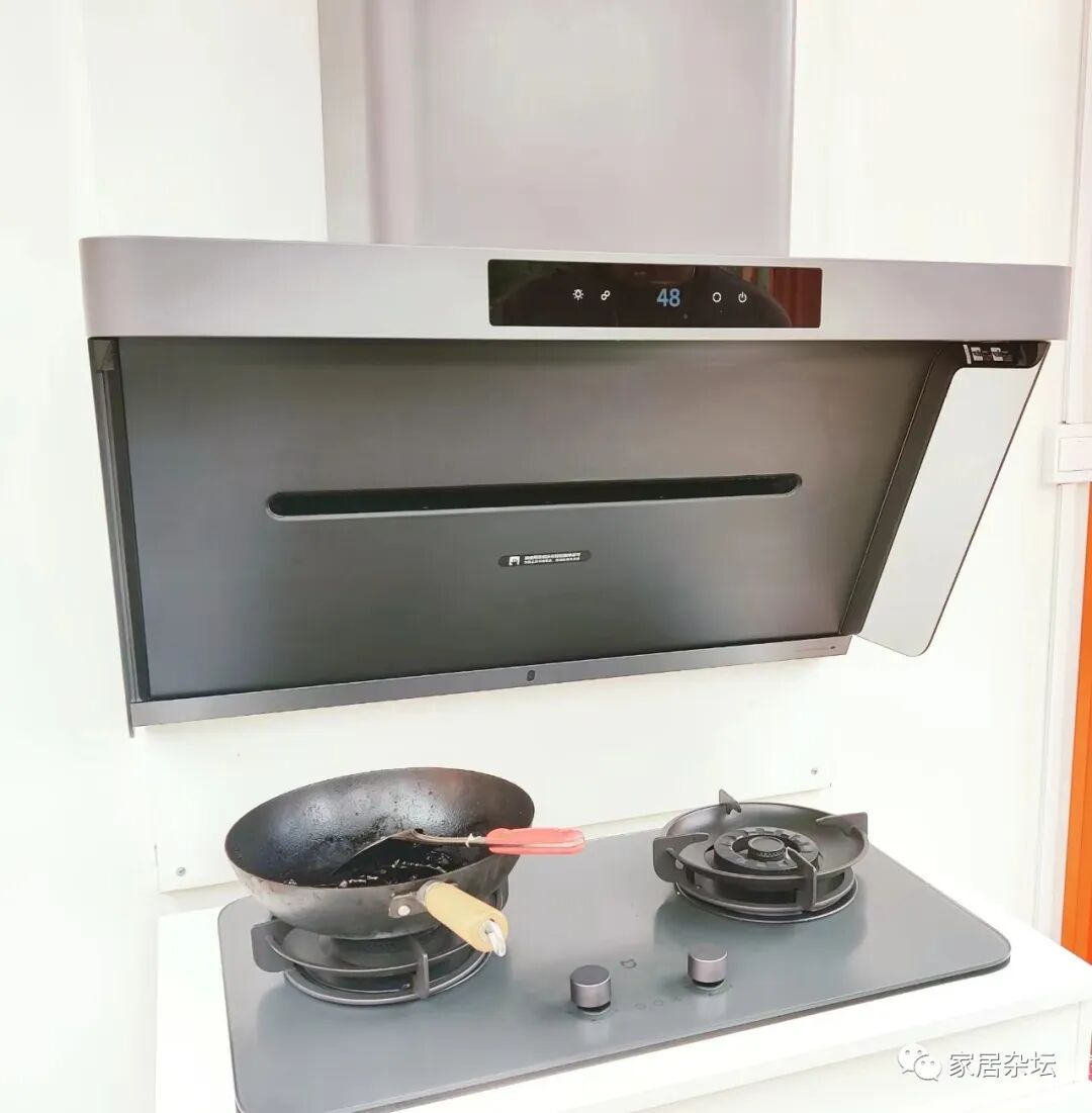 ②、如果打算买双电机的油烟机,一定要测试一下抢烟的情况。也就是打开油烟机开以后,看一下排烟的具体效果。