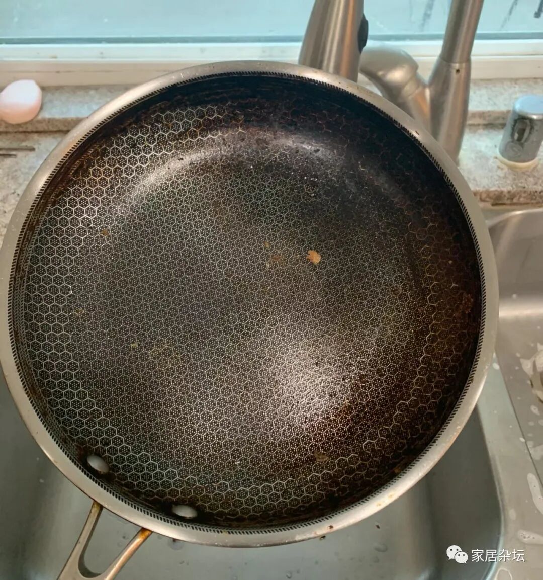 ③、不粘锅可能刷不太干净。因为每次只是用清水冲一下,看着还是很干净的,其实上面还沾浮了很多的油污。如果时间长了,其实是很不卫生的。