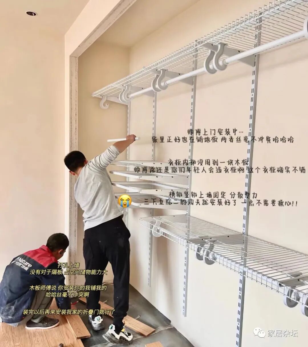 对于壁橱衣柜,个人总结一下,可以按照如下的步骤来进行安装。