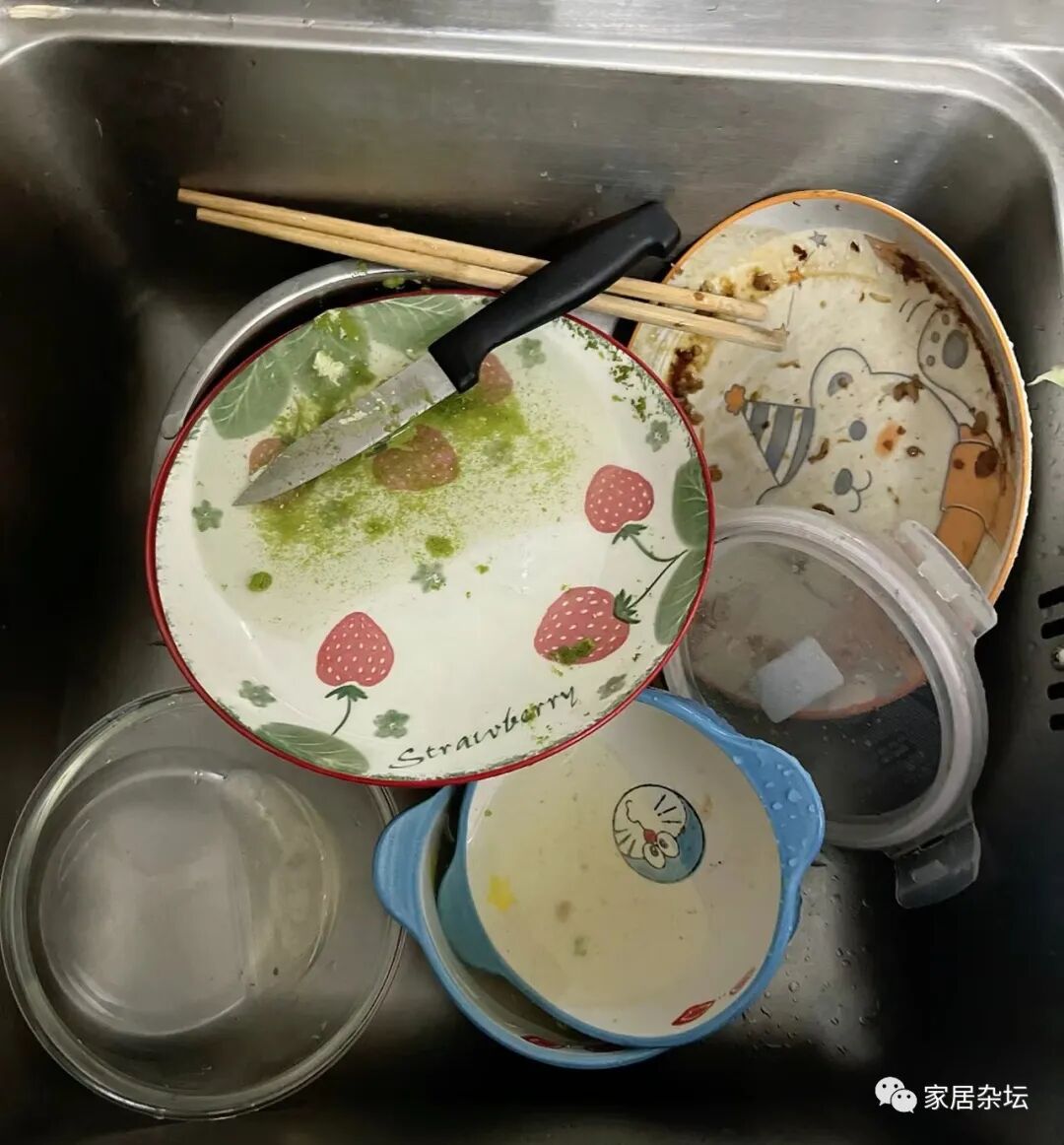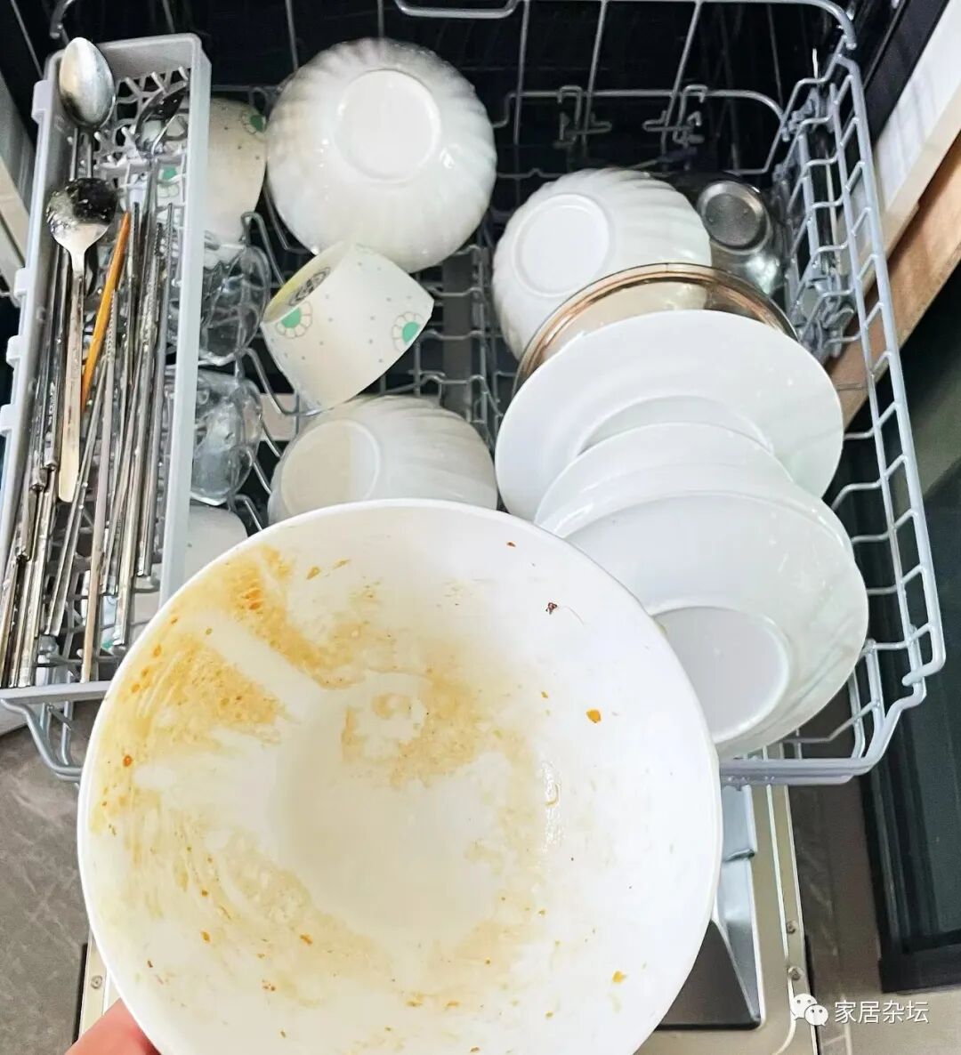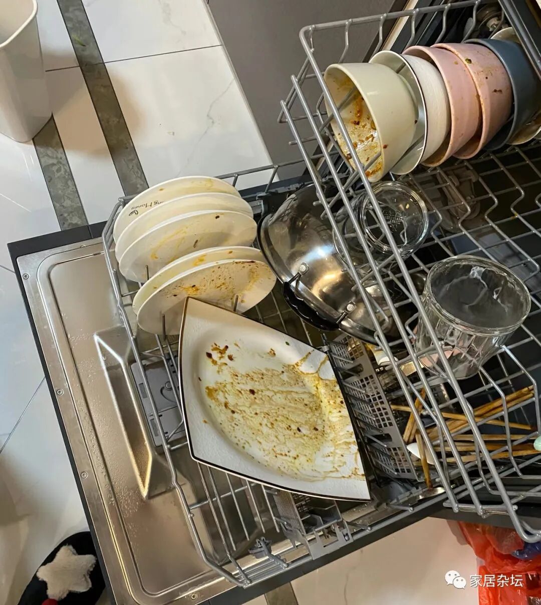 ②、还增加了清理剩饭剩菜的时间。在码放碟子碗之前,要需要将碟子碗内的剩饭剩菜都简单清洗一下。而如果我们手洗,直接顺手就洗干净;使用洗碗机,就需要单独做这件事情。