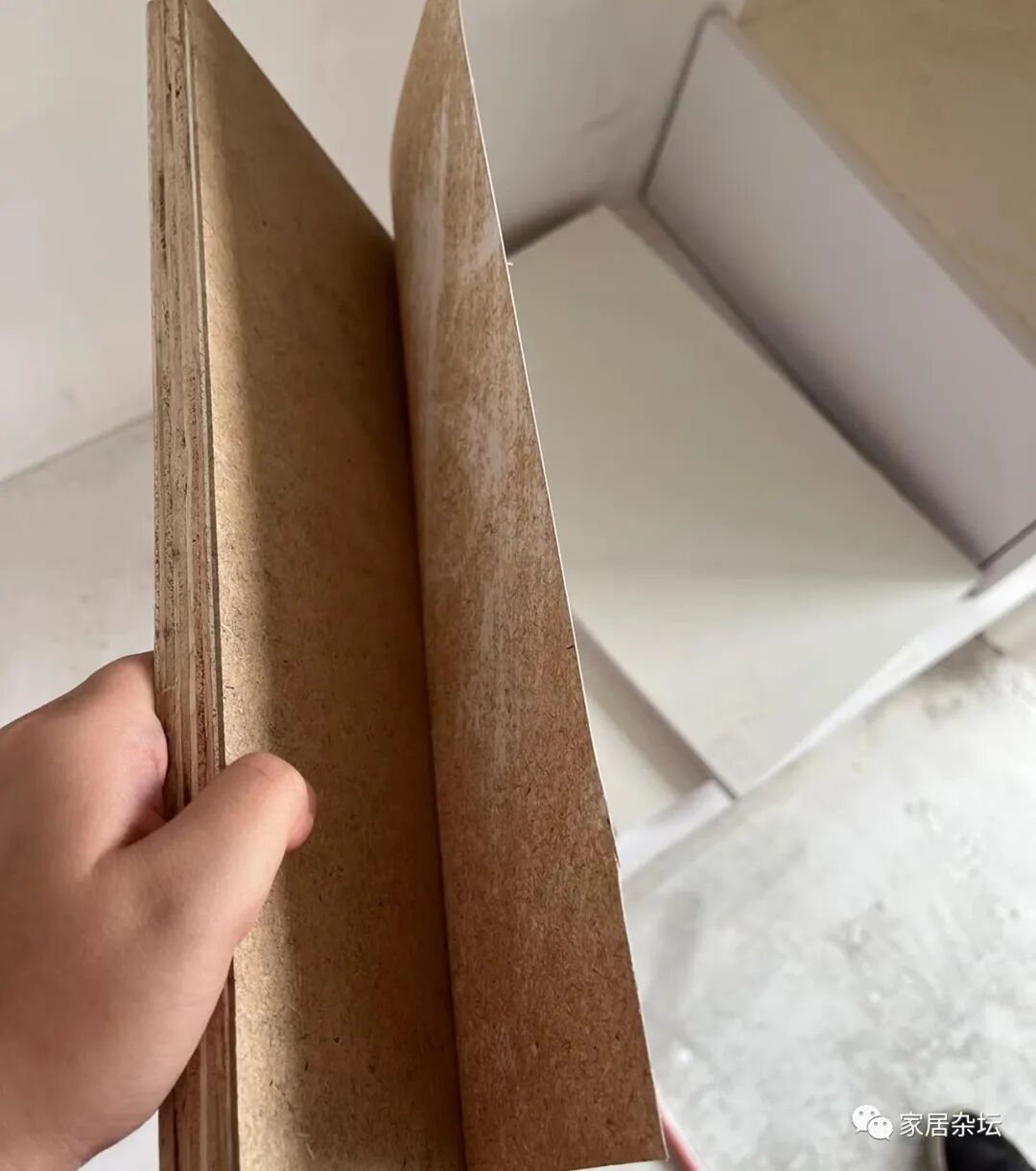 ③、容易出现分层的情况。这种板材受外力,或者是受潮等原因,可能会导致板材出现分层。最后发现这种板材就不能用了。