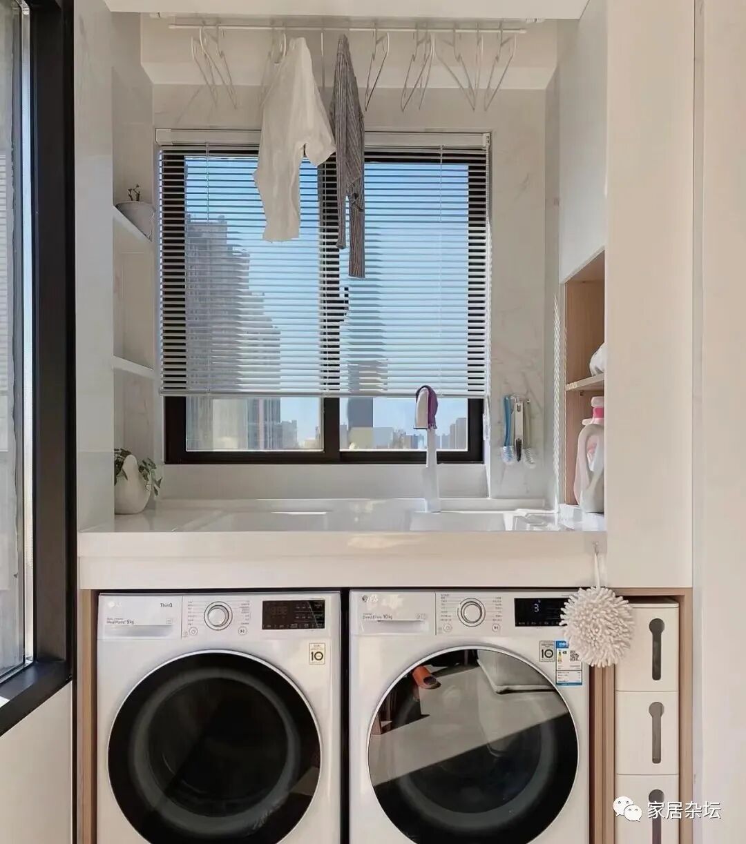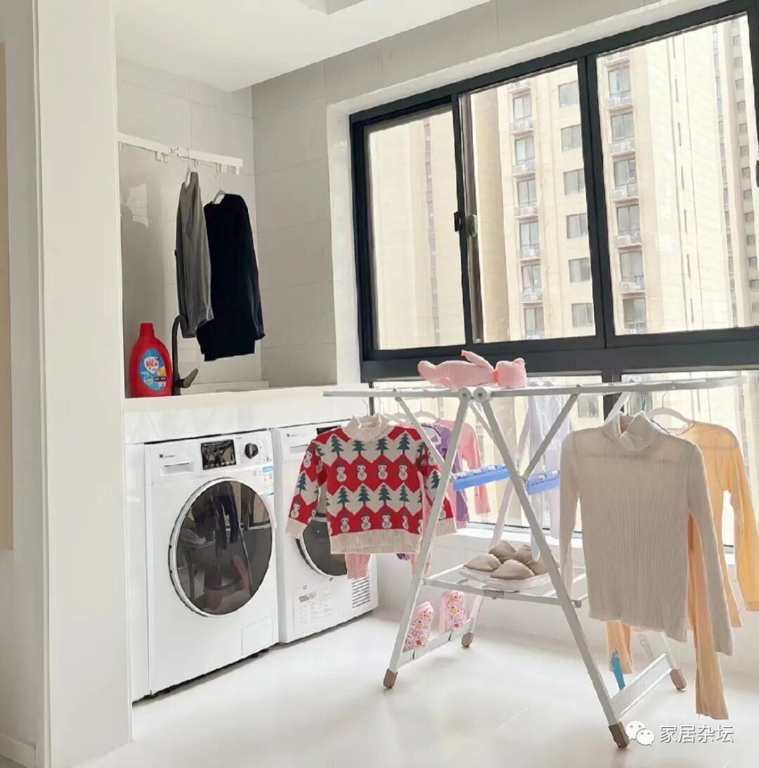 其实此时还是有晾衣区的,只是从阳台转到了洗衣机伴侣柜的位置。