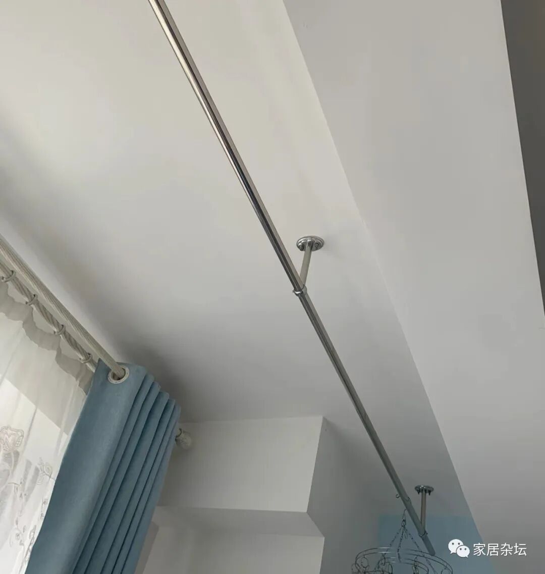 ①、安装方式,个人建议大家就使用膨胀螺栓在顶板上固定。晾衣杆的高度,尽量安装高一些,这样就可以几乎看不到了,不会影响美观。