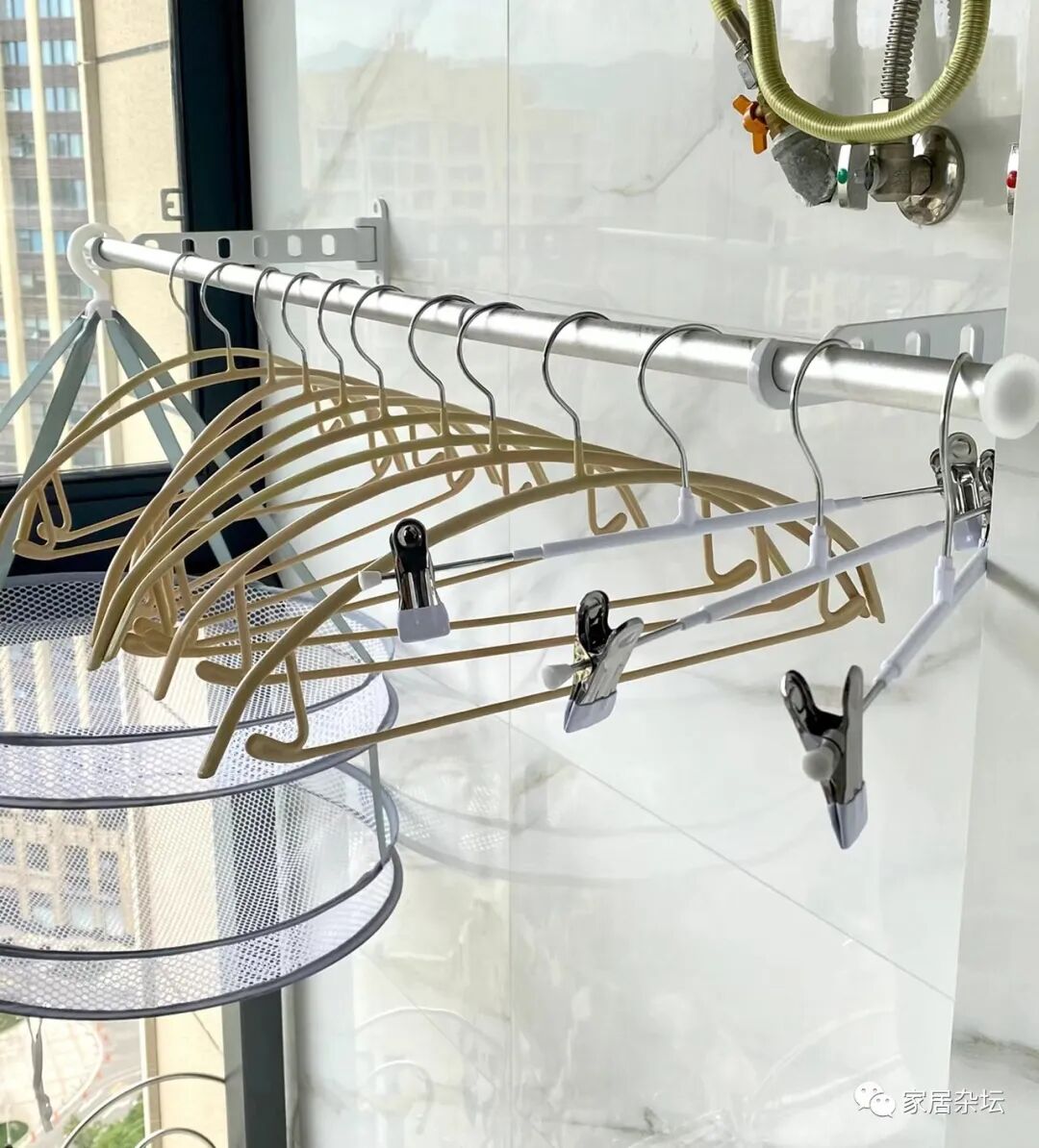 ②、晾衣架的选择,大家也要注意。这里个人建议大家尽量选择不锈钢的晾衣架。不锈钢晾衣架的本身比较结实,也比较耐用,而且,不会受到太阳照射而出现老化的情况。