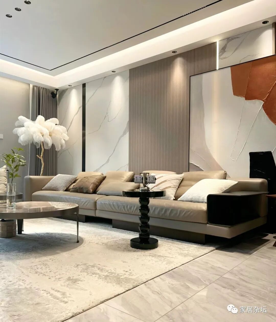 ①、如果我们家里是设计的无主灯,那么其实大家可以考虑一下柔光砖。柔光砖有一定的光泽度,不会出现光污染,同时没有哑光砖的一些缺陷。