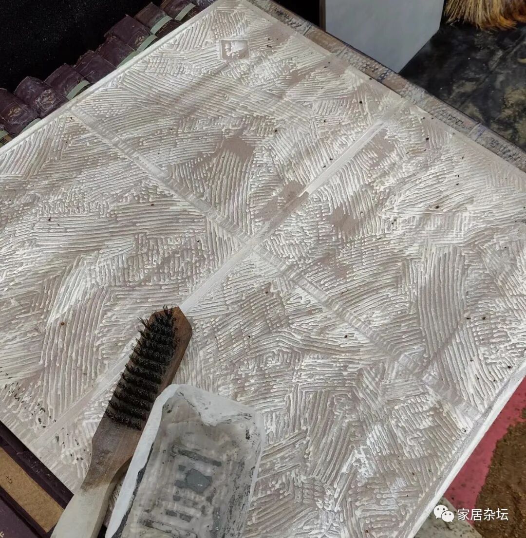 ②、如果我们家里的瓷砖有蜡或者有脱模剂,那么尽量要把这些处理干净。例如背部的脱模剂,我们可以使用铁刷子或者角磨机打理干净。