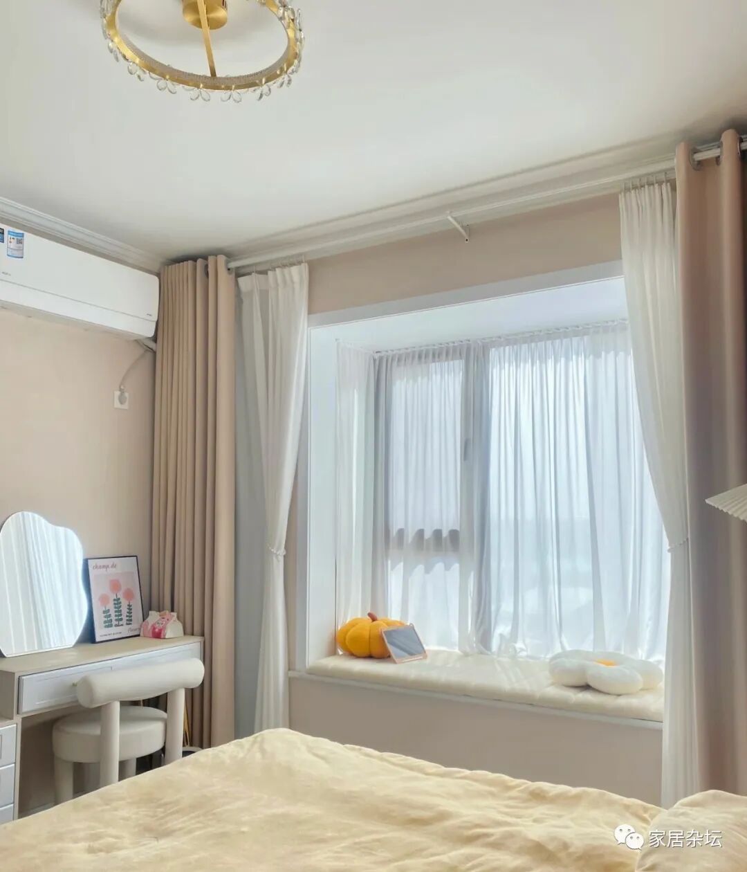 其实我们在考虑飘窗功能的时候,还可以考虑一种方案,就是把它设计成化妆台。