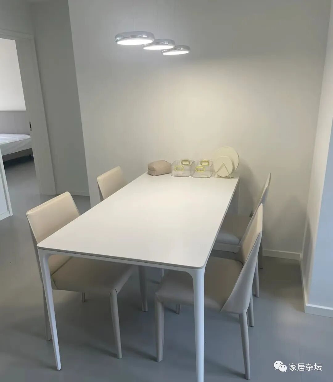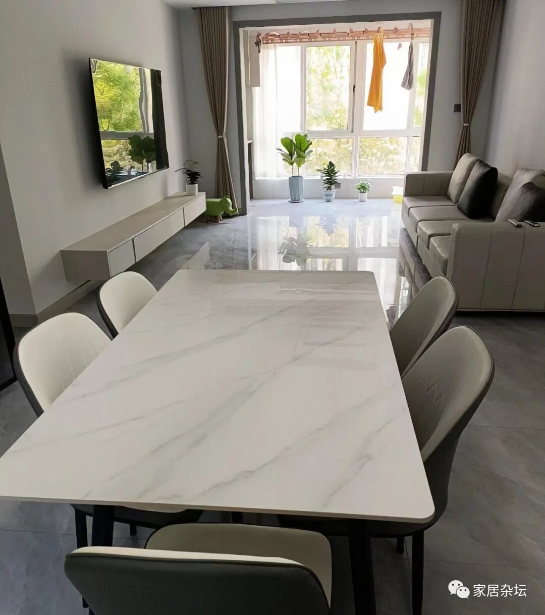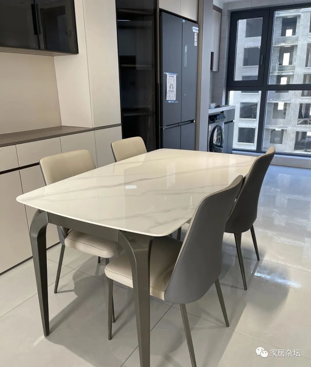 ②、岩板餐桌再搭配上家里的通铺的瓷砖,让家里感得更加的冷清,没有任何温馨感。特别是岩板餐桌加上通铺地砖,还有的家里贴了墙砖,这一点更为明显。