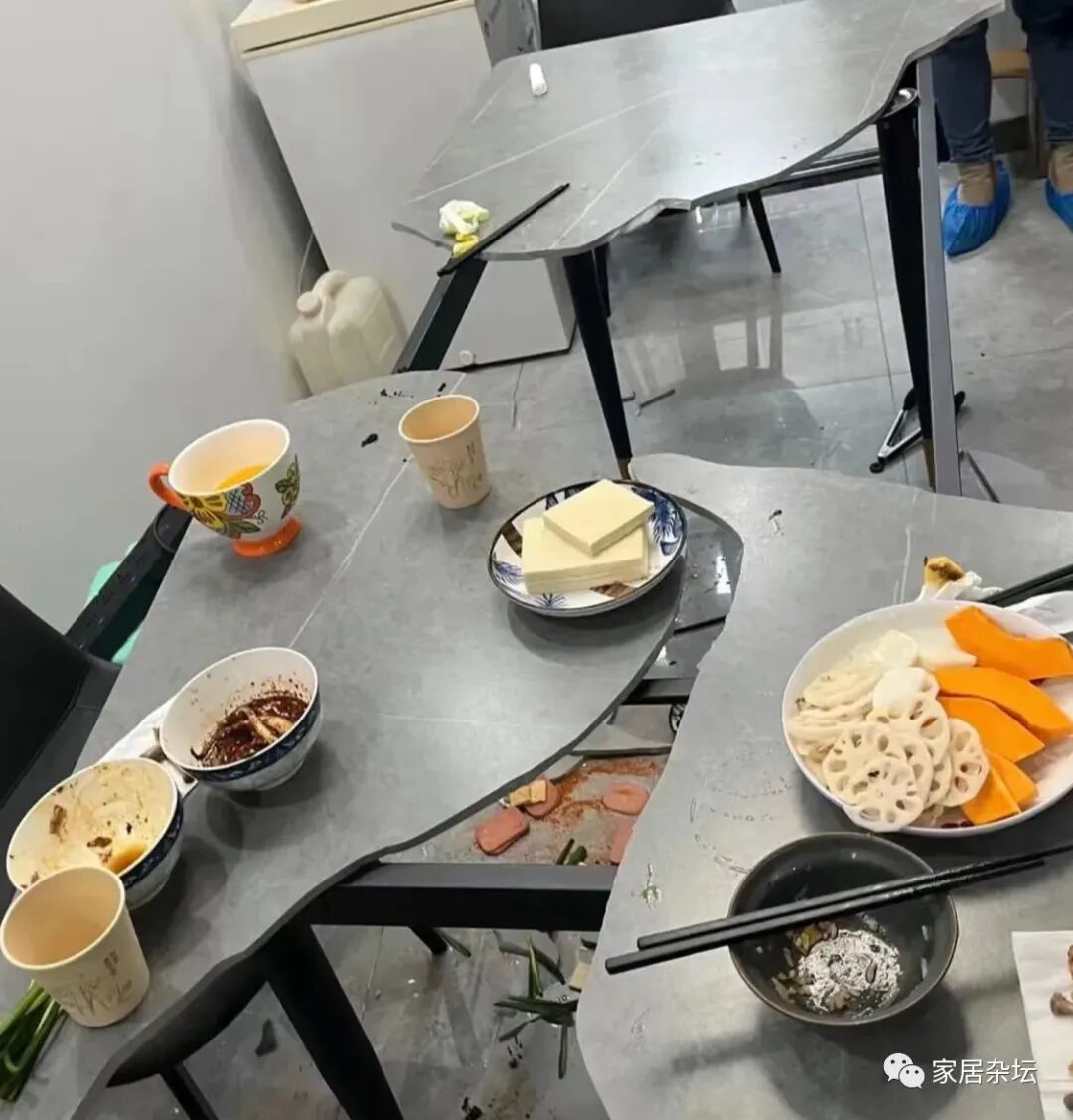 为什么这么说呢?主要是在使用中,岩板餐桌存在了以下的问题: