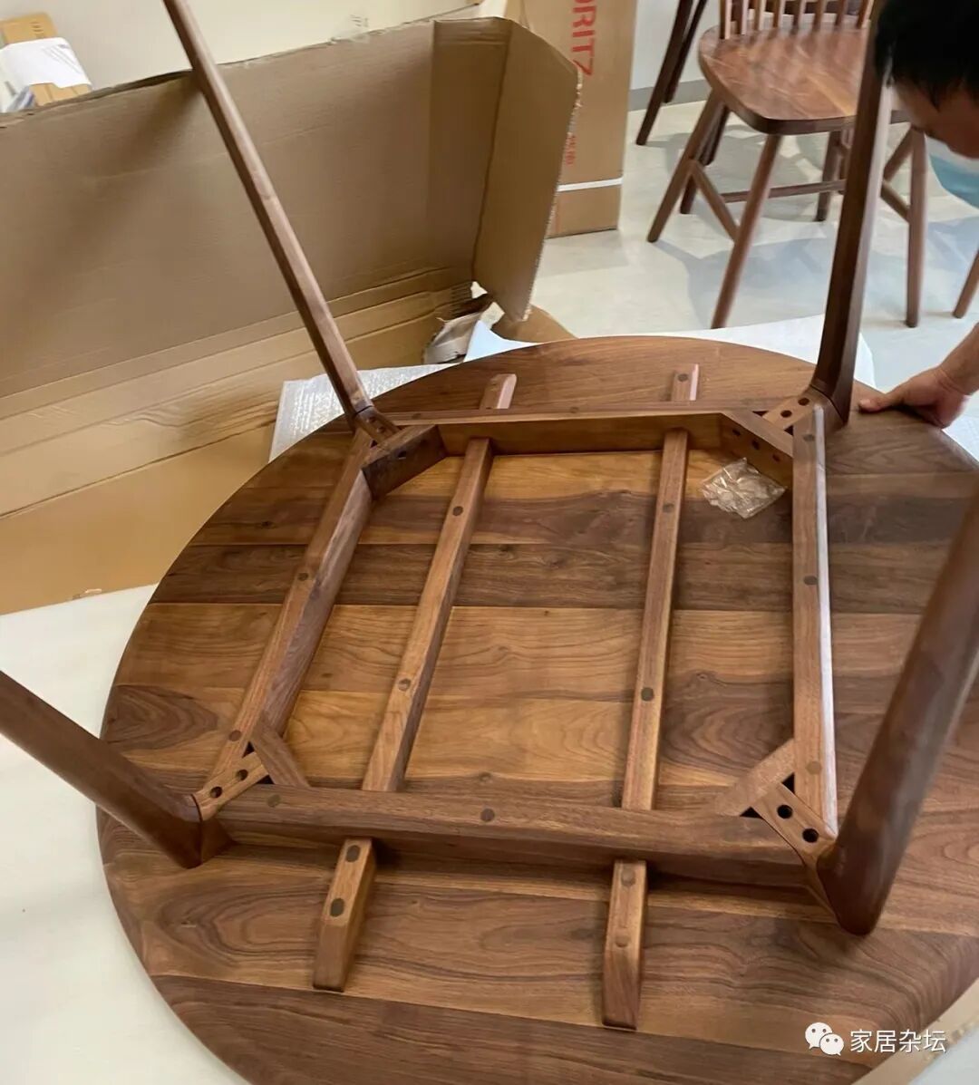 ①、首先建议大家选择的就是穿带榫结构。这是最结实,工艺最复杂的一种结构。也是比较耐用的一种结构方式。但是,这种餐桌是无法拆装的。