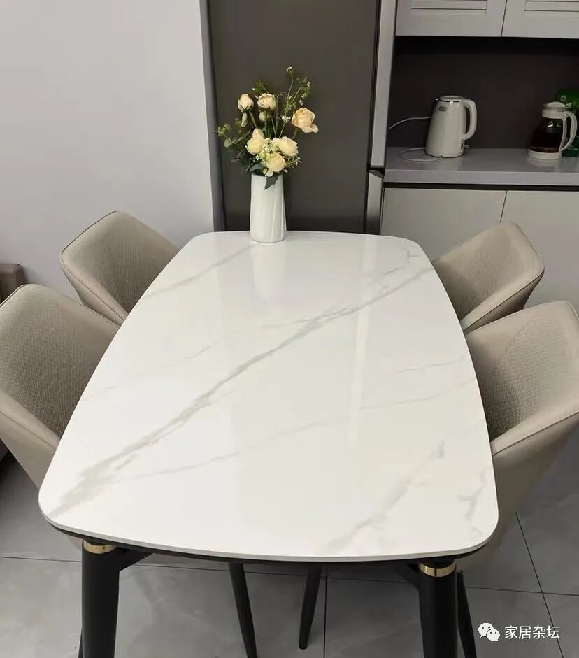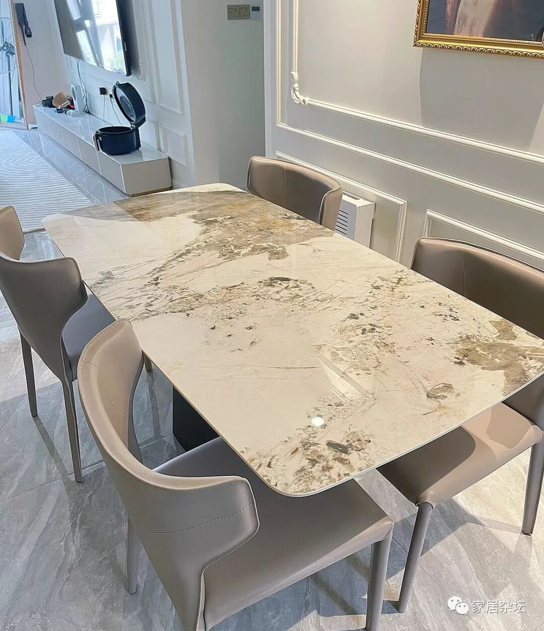 ③、朋友的推荐。很多朋友,也给我推荐岩板餐桌,说他们家里都用的岩板餐桌,多么多么的好用。