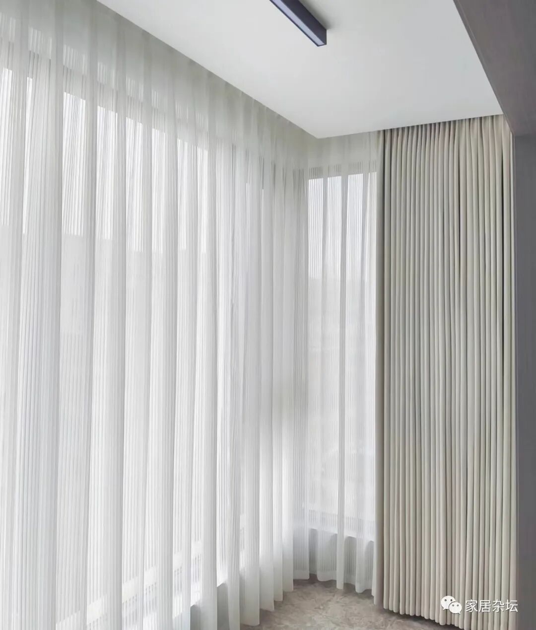 但是,其实还有另外一种方案,就是在客厅的位置,还有就是阳台的位置都安装一道窗帘。客厅的位置,一般安装纱帘。这样可以形成很好的搭配,唯一的缺陷就是费用会增加不少。