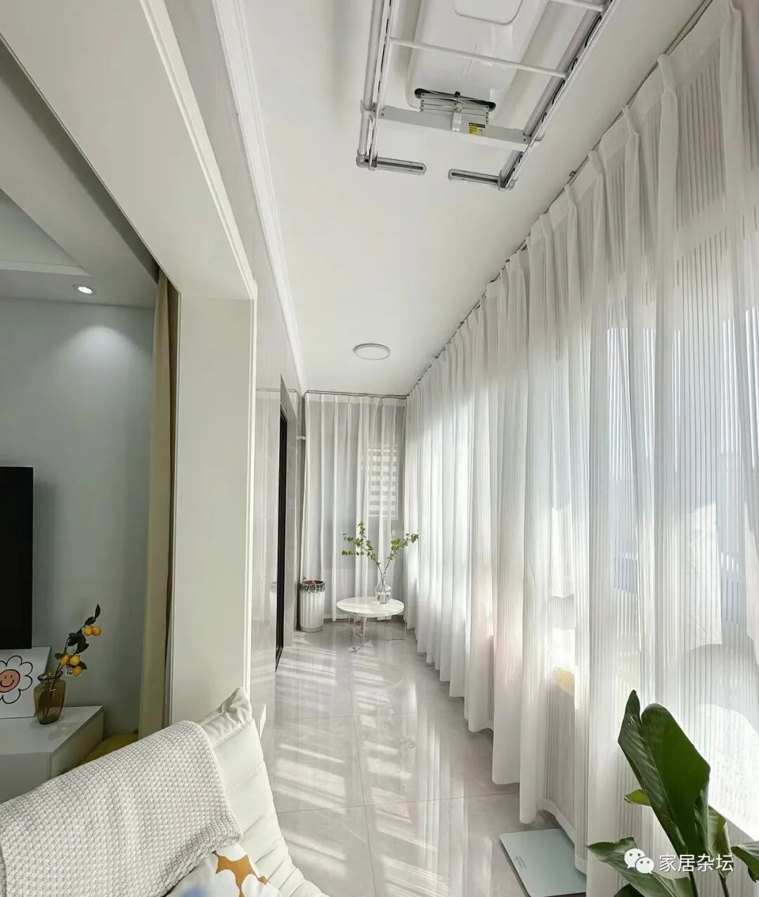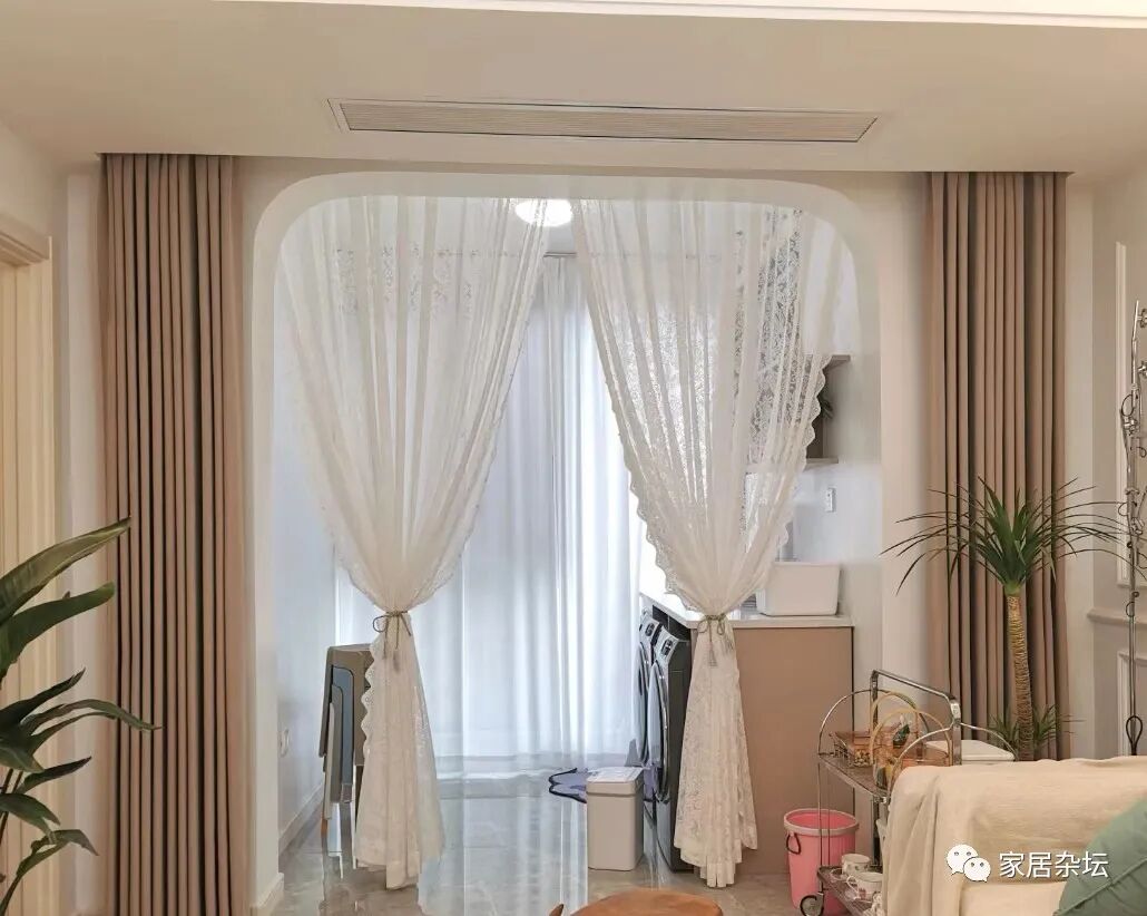 相信有很多朋友都是这种做法,装修时拆掉了阳台推拉门,取而代之的是安装了窗帘。