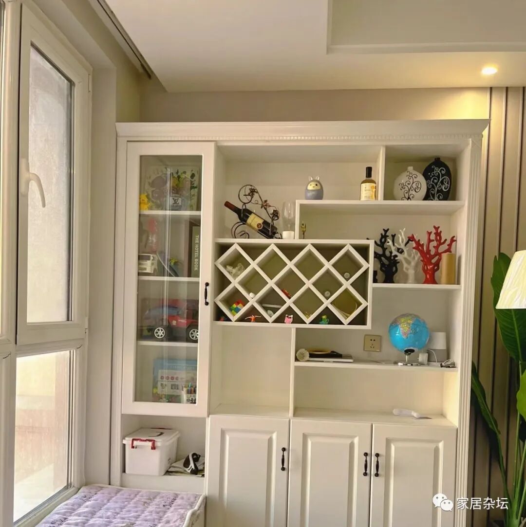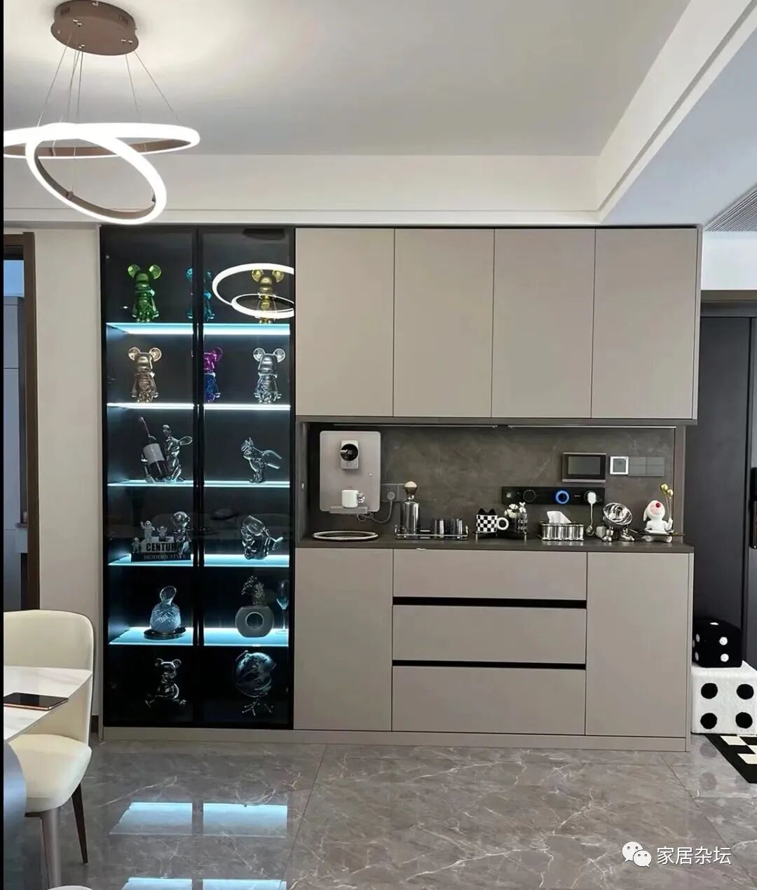 ②、储物柜代替酒柜。因为酒柜的用处确实不是很大,除非我们是酒的爱好者。所以,对于很多家庭来说,都利用了储物柜来代替了酒柜。