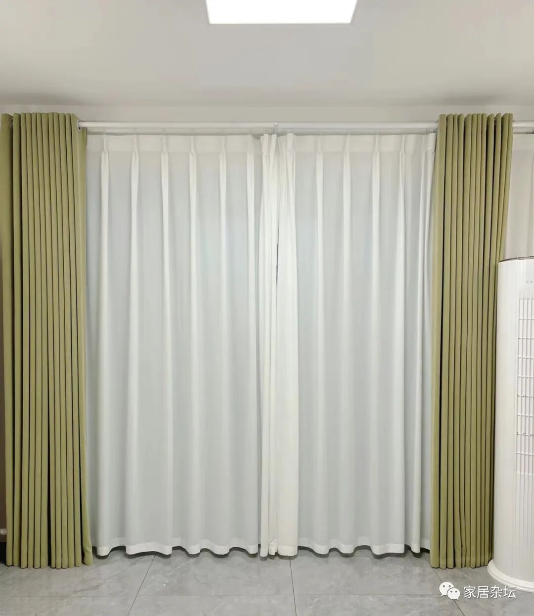 ②、电动窗帘来代替传统罗马杆。其实电动窗帘,也是窗帘盒的一种。只是在两端安装上电机,实现了自动窗帘,让我们有更好的体验。