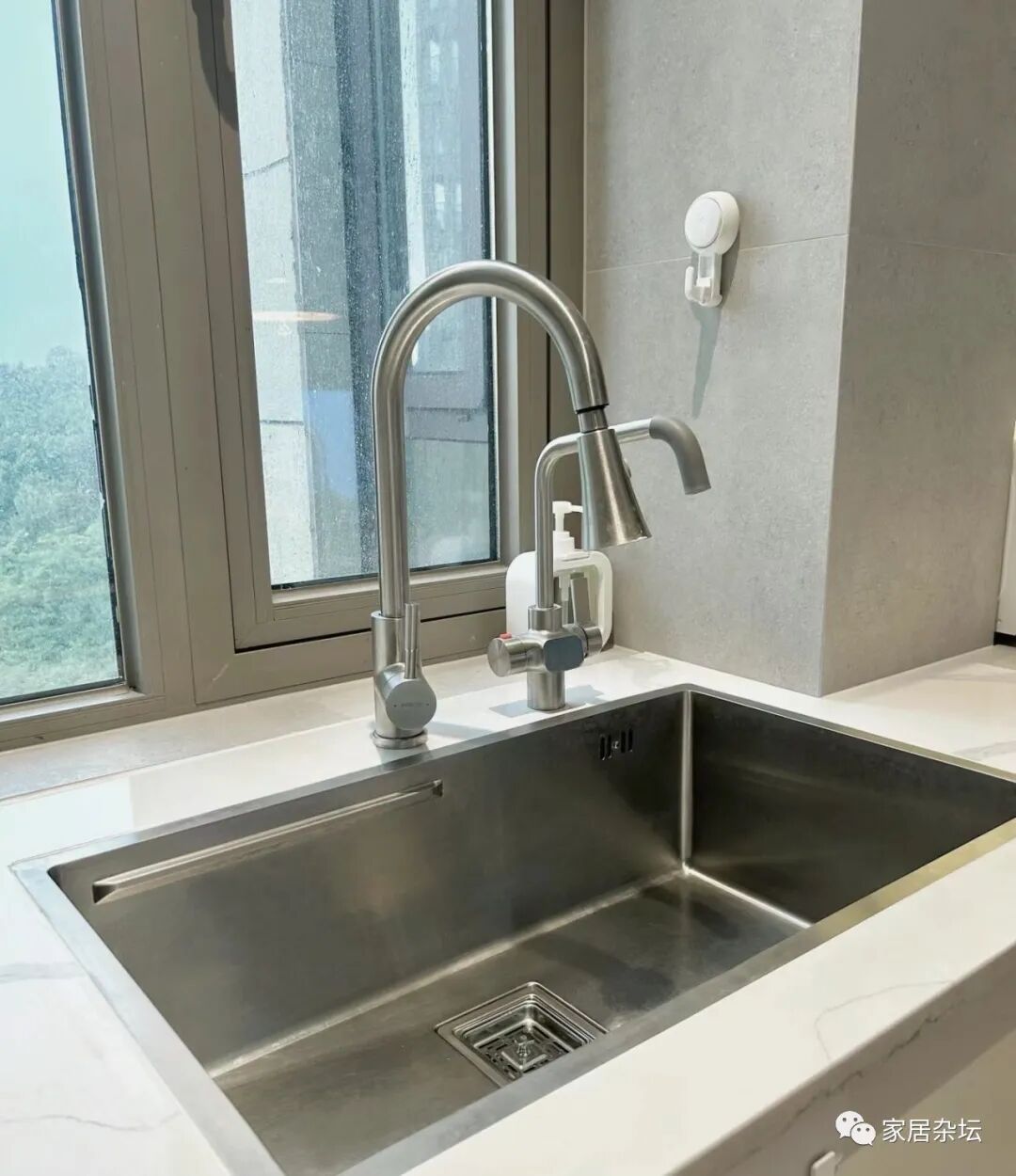 ②、台下盆来代替台上盆。这时水槽上表面是在台面下面的,所以不存在挡水和发霉变黑,但是要注意防止脱落。