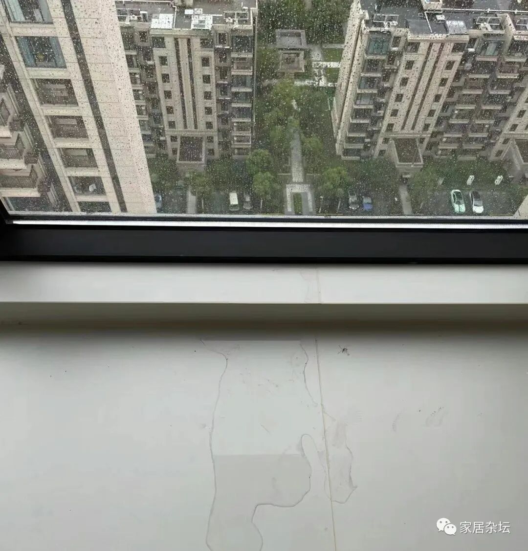 ②、窗台外侧积水。特别是外侧的窗台坡度不对,每次下雨以后就堆积雨水,这些水不能及时排走,慢慢的就顺着窗台渗透到我们家里的窗台。