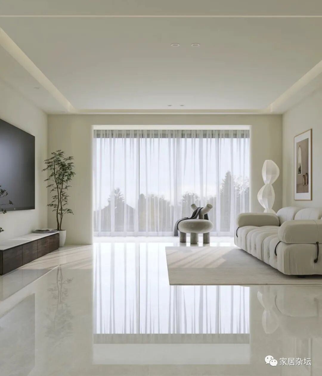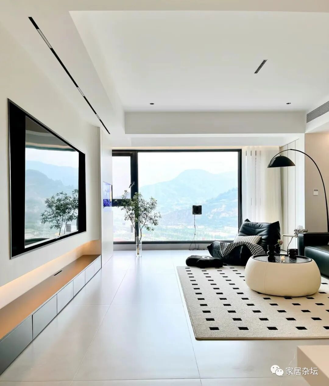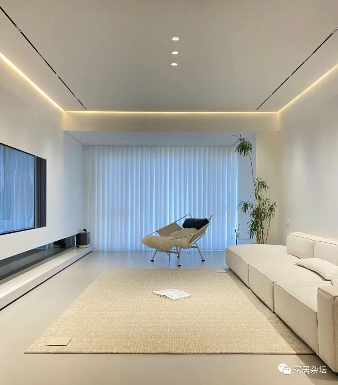 ⑤、配上投影或者是激光电视,代替传统的电视。这样我们只是利用客厅的一面墙,也不用装电视背景墙,满足了观影,又实现了极简。