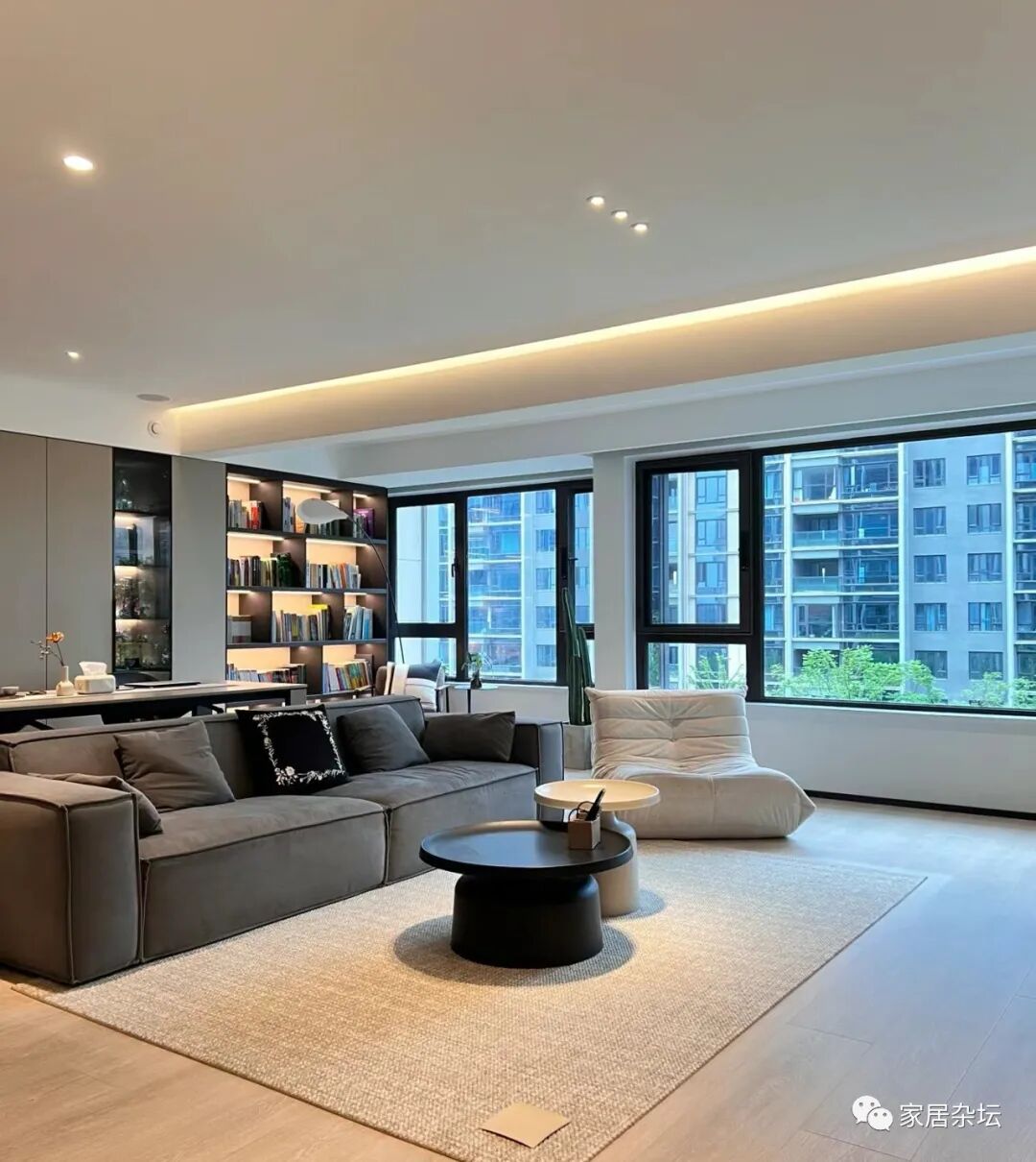 ①、方案设计。个人建议大家采取去客厅化装修。让客厅放弃传统的沙发,茶几,电视柜的传统布局,实现更自由的搭配。