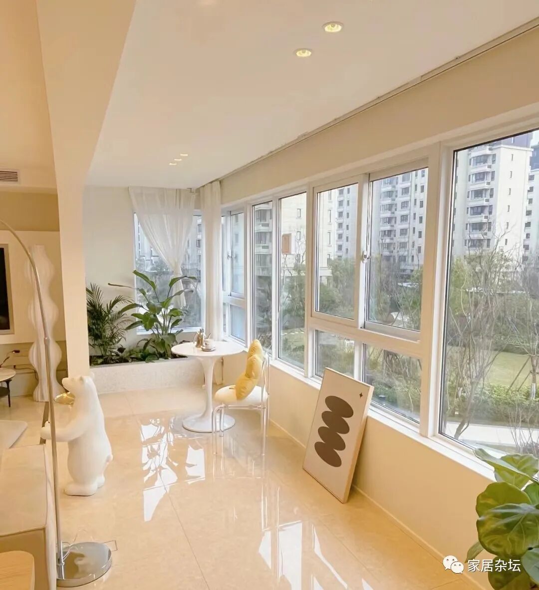 ③、阳台应该能够实现尽可能多的活动空间。如果条件允许的话,阳台应该与客厅一体,让我们整个客厅阳台看着更简单。