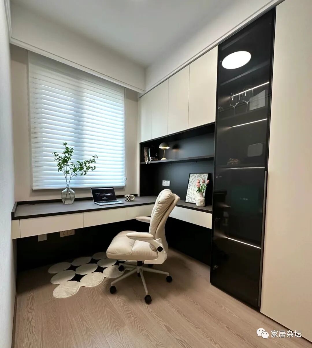 ③、书房建议大家配置一个书桌。书桌的周围空间要空一些,不要特别的满当。让学习的时候,有更多的自由的空间。