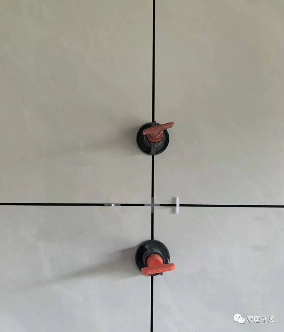 ②、窄缝铺贴瓷砖时,建议大家留缝1mm。具体的留缝方法也很简单,就采取专用的1mm留缝卡子来进行铺贴,这样保证缝隙均匀一致。