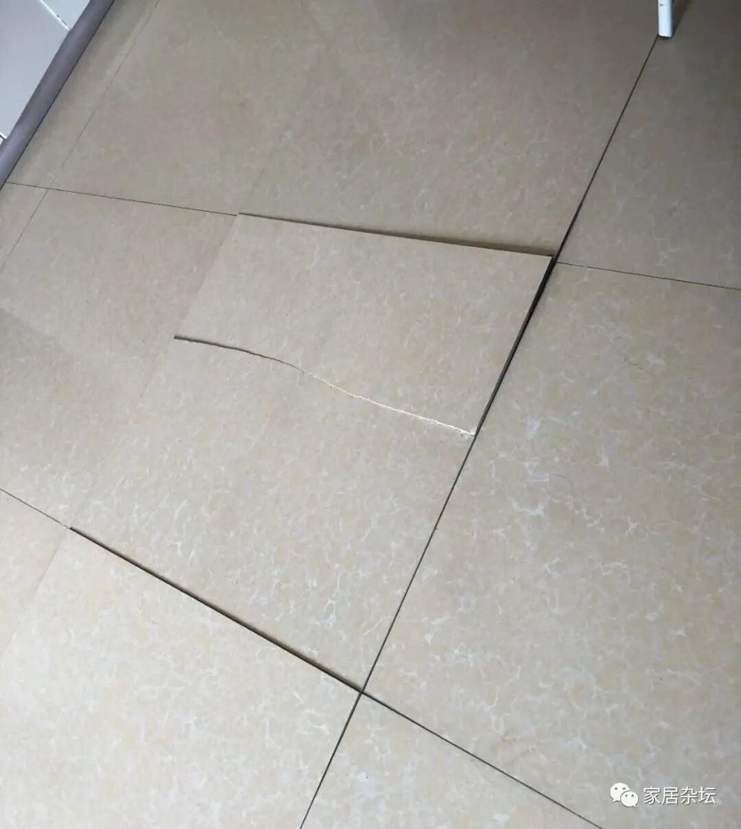 瓷砖炸裂,常见于大面积铺贴的瓷砖,而且瓷砖的厚度、密度一般比较差。
