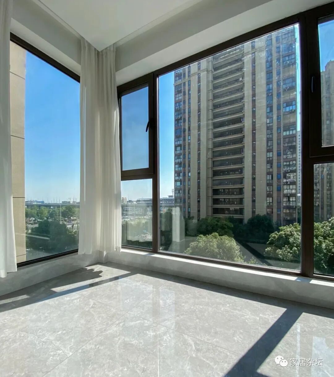 ④、窗帘的问题。对于阳台,还要考虑阳台窗帘具体安装位置。因为窗帘可以安装在阳台窗,也可以安装在客厅。对于不同的位置,大家一定要考虑好。