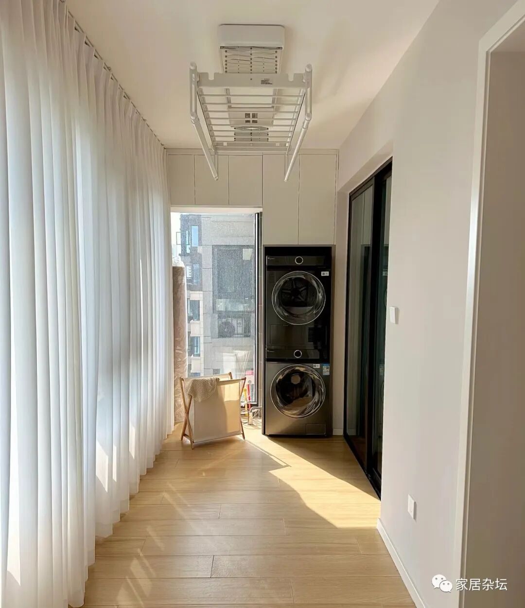 ②、阳台的晾衣区。这是很多朋友忽略的,盲目跟风做成了取消晾衣区的做法。最后发现,家里的衣服没有地方晾晒,所以要提前考虑晾衣服的问题。