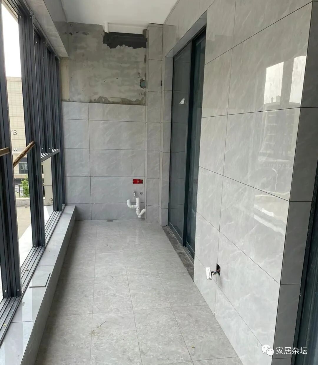 其实,这也是由于粘贴瓷砖时,对阳台墙面很难做出好的处理所导致:
