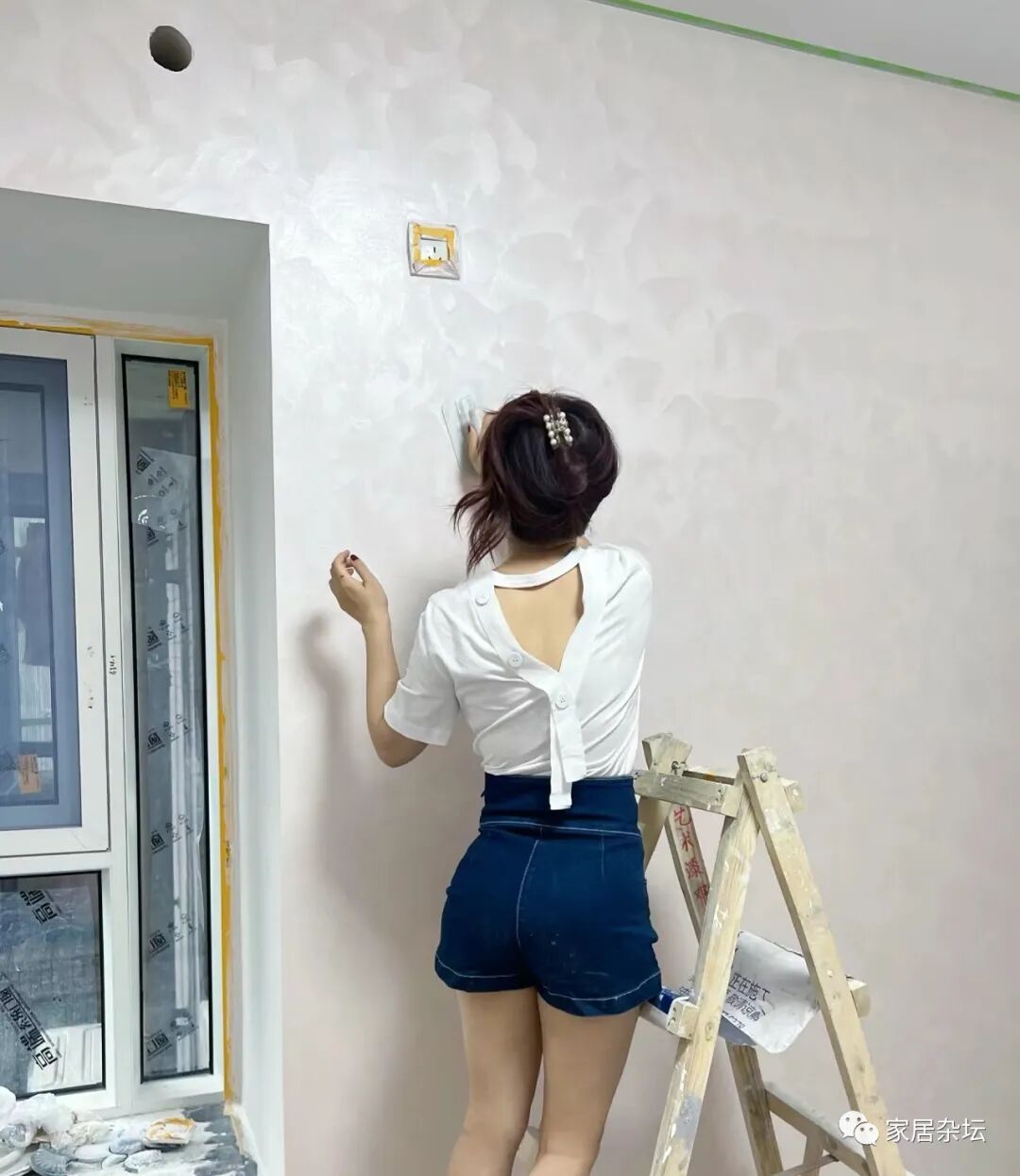 ④、刷艺术漆。其实还有一种方案,就是艺术漆来代替乳胶漆,具体的做法也是先批刮腻子,然后表面批刮艺术漆,会实现不一样的阳台装修。