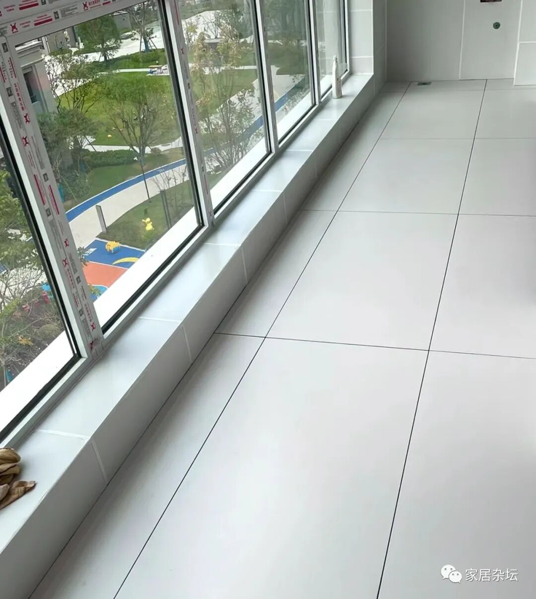 ②、由于排版的问题,也导致阳台墙砖和地砖不好对缝。对于地砖大多是800×800毫米到750×1500毫米,而墙砖一般是400毫米×400毫米之内的,所以,铺贴完以后发现很难对缝。