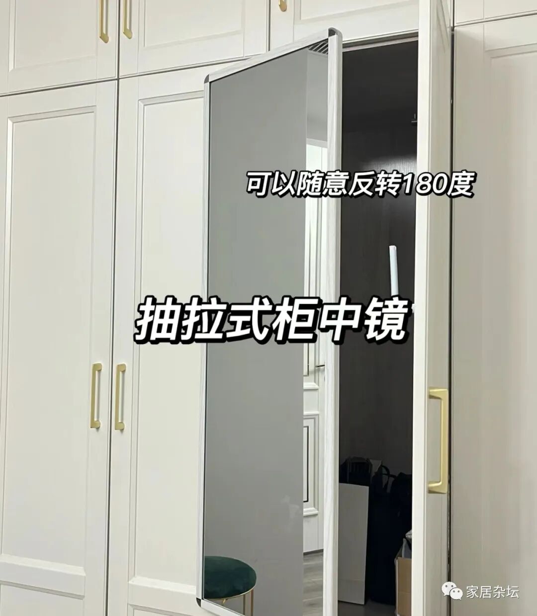家庭装修中,还有一个非常好用的装修设计,就是隐藏式试衣镜。
