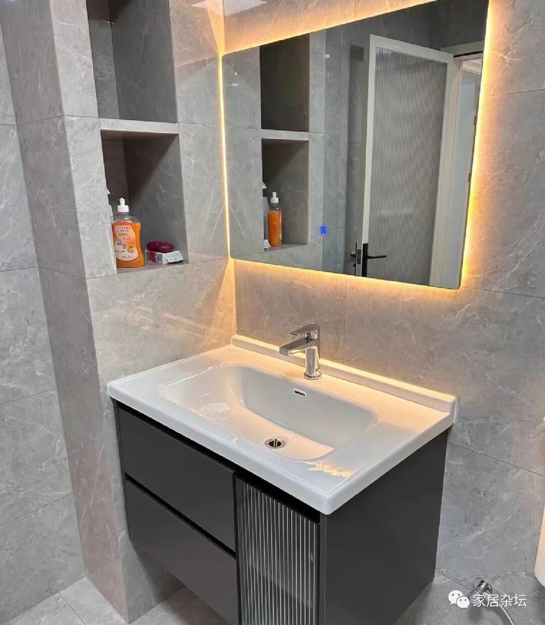 的确,岩板一体盆盆的效果高级感,瞬间就满满的,让人感觉卫生间非常有档次。