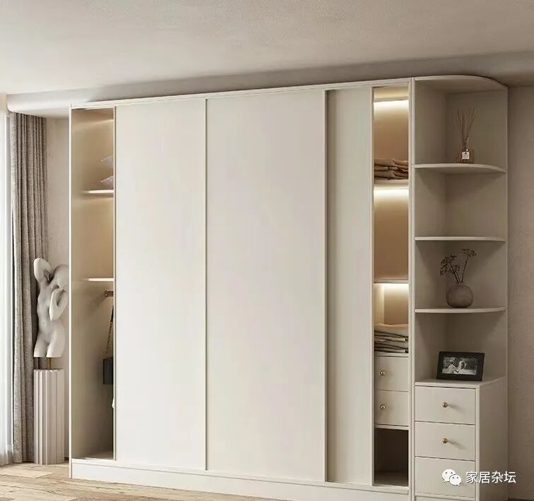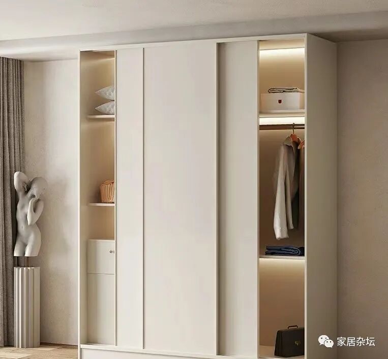 衣柜推拉门的本质,就是在开门的过程中,柜门是不会突出于衣柜的。