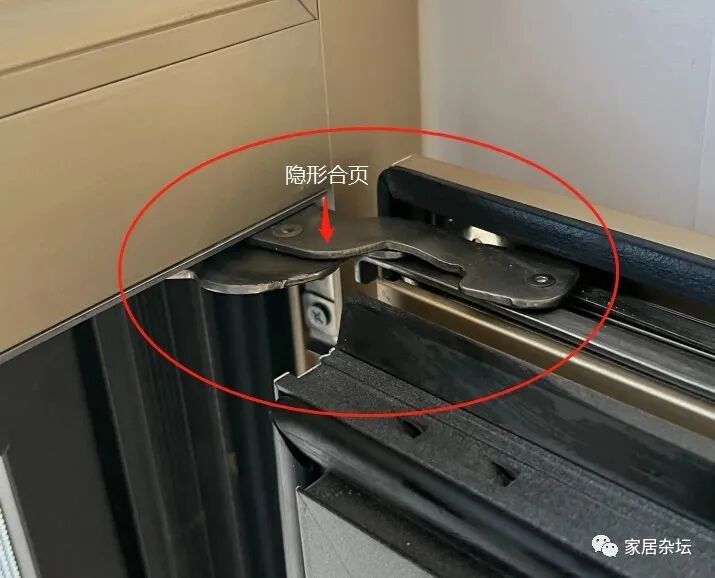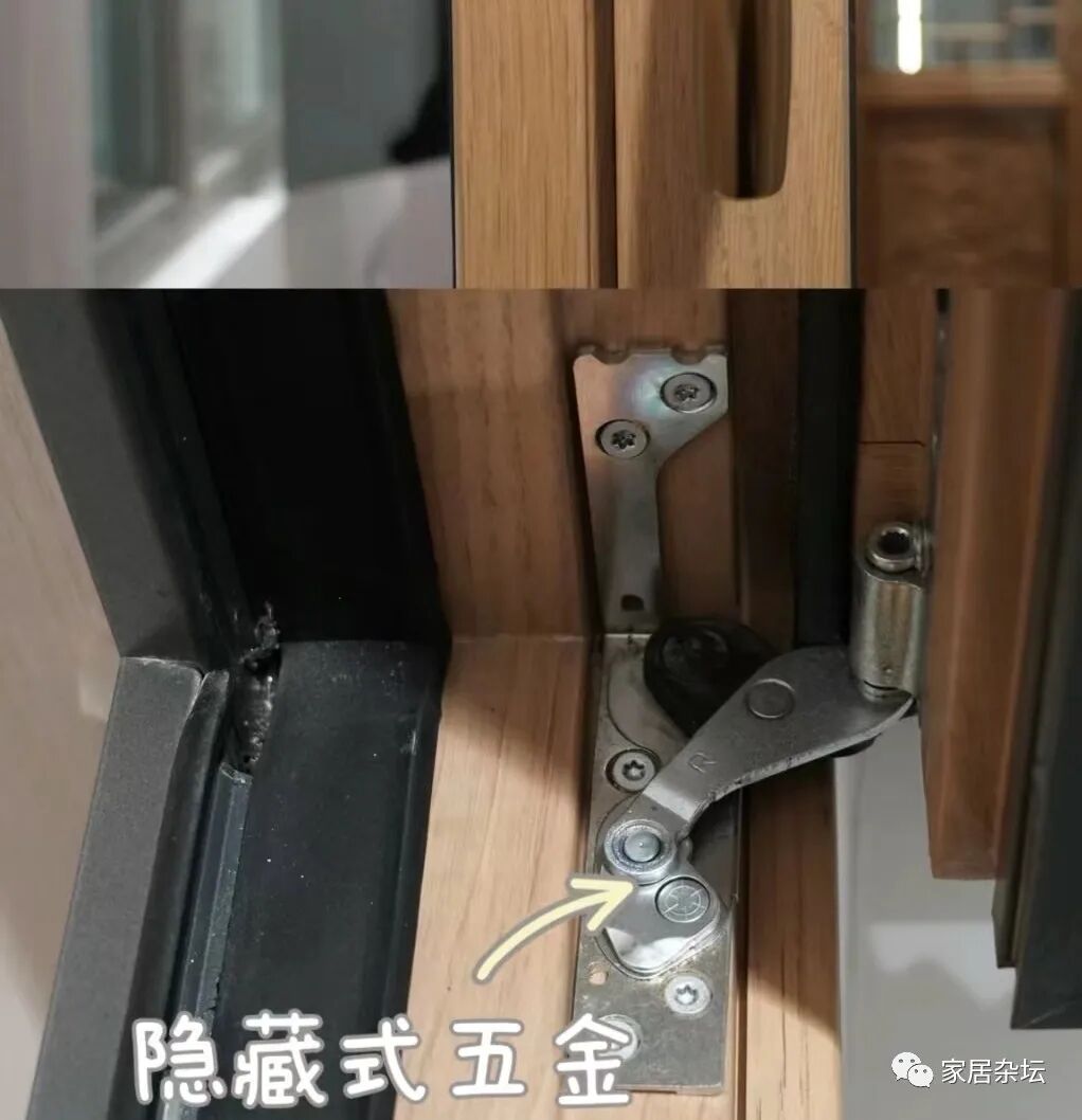 ①、建议大家尽量选择隐藏式的五金。隐藏式的五金,它的合页侧五金是完全隐藏的,在外面是看不到的。因为隐藏式五金的门窗,在关上以后,会让整个室内完全融为一体,也更好看。