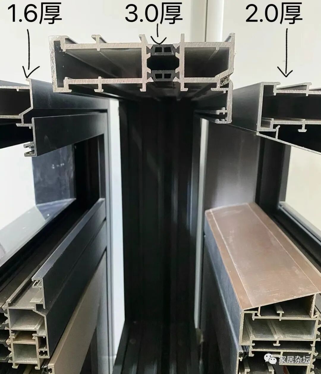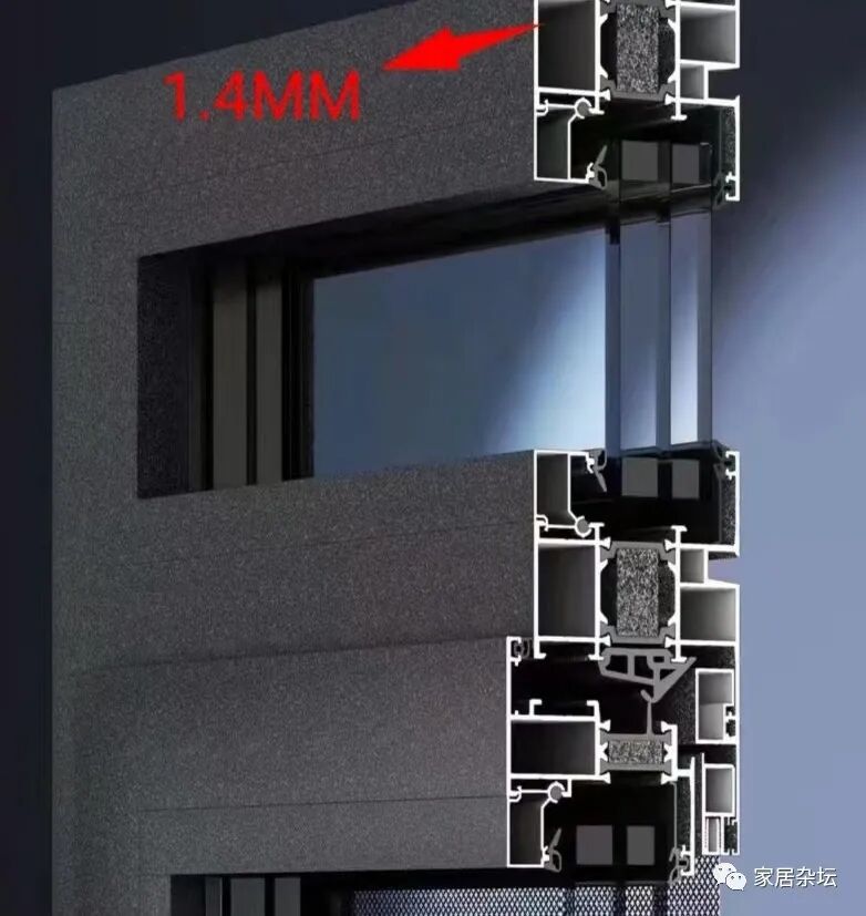 例如我们所见到的传统的断桥铝窗,主框铝合金型材的壁厚一般是1.2~1.4毫米;而压条的厚度,基本上是1.0~1.2毫米。