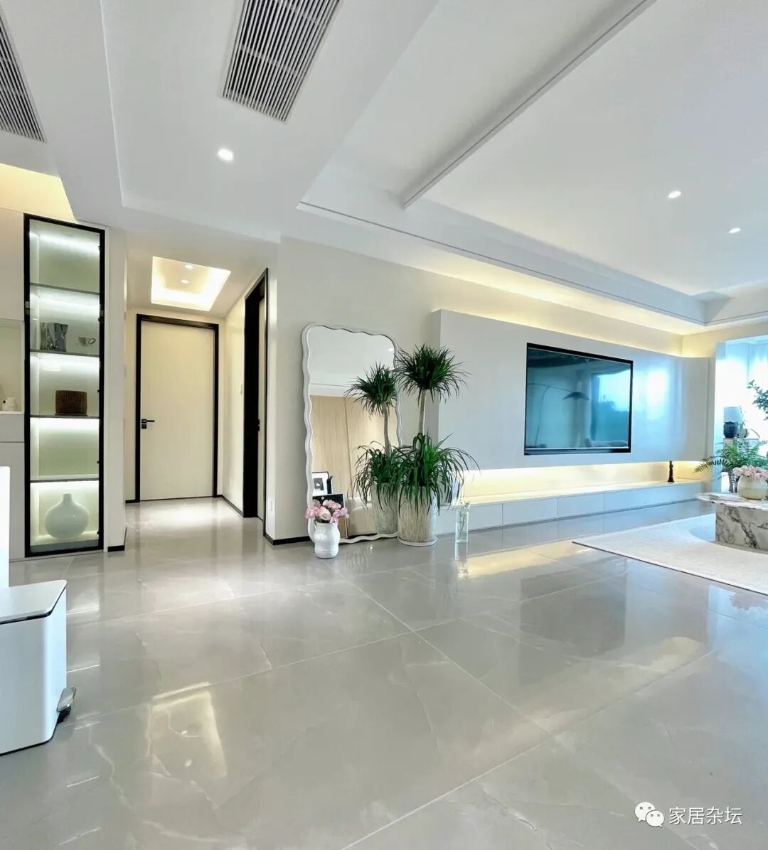 ③、大气的地面,同样也就不用再使用波打线或者是过门石。在这个方面,可以使用瓷砖来代替,既通透,而且节省费用。