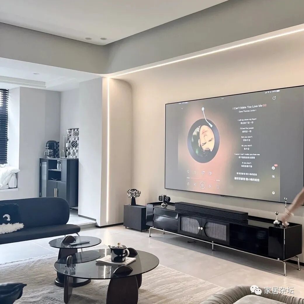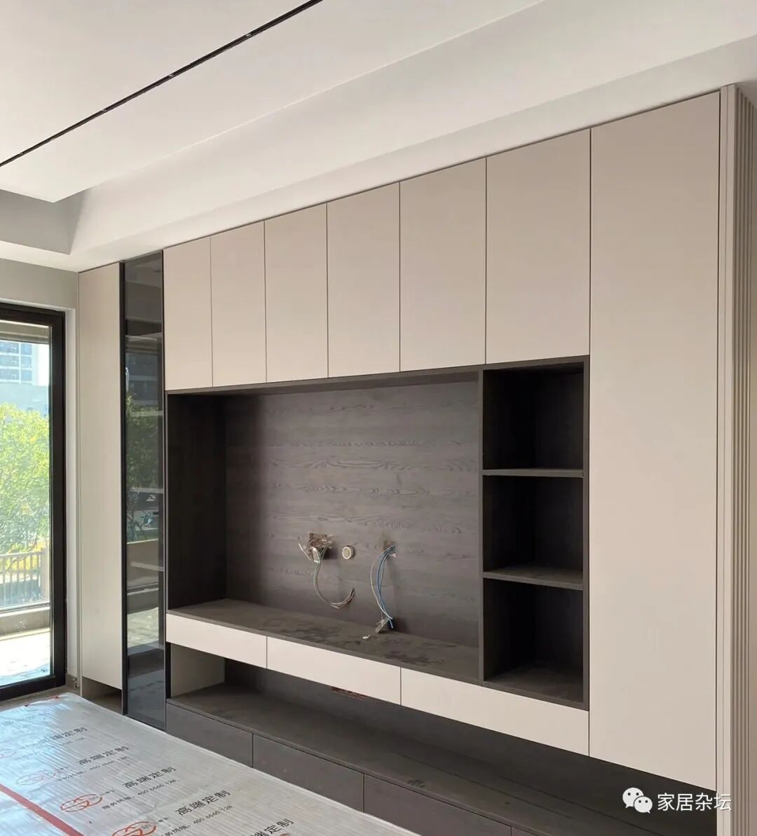 ③、柜子做成封闭的,可以与墙体形成整体的效果,会更加耐看。这一点针对于电视柜而言尤为重要。