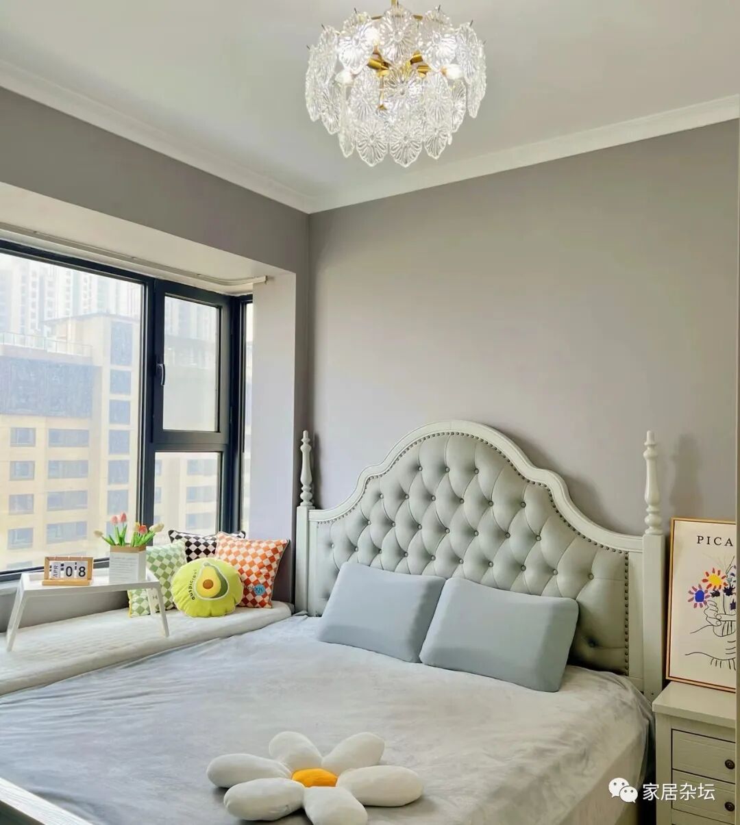 ②、飘窗也更好的利用。比如我们在飘窗上,可以设计成学习区、娱乐区,这样整个飘窗的空间和卧室的空间都可以利用。