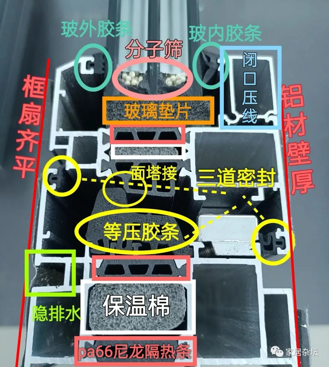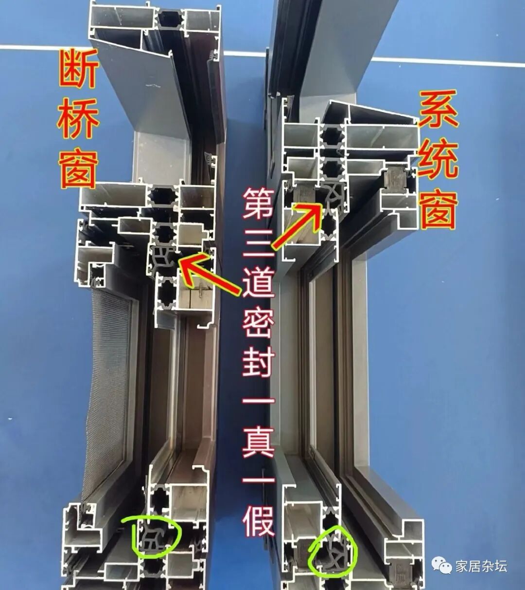 虽然说系统窗和普通断桥铝窗,基本上都是依靠铝合金型材、五金、胶条组成的。