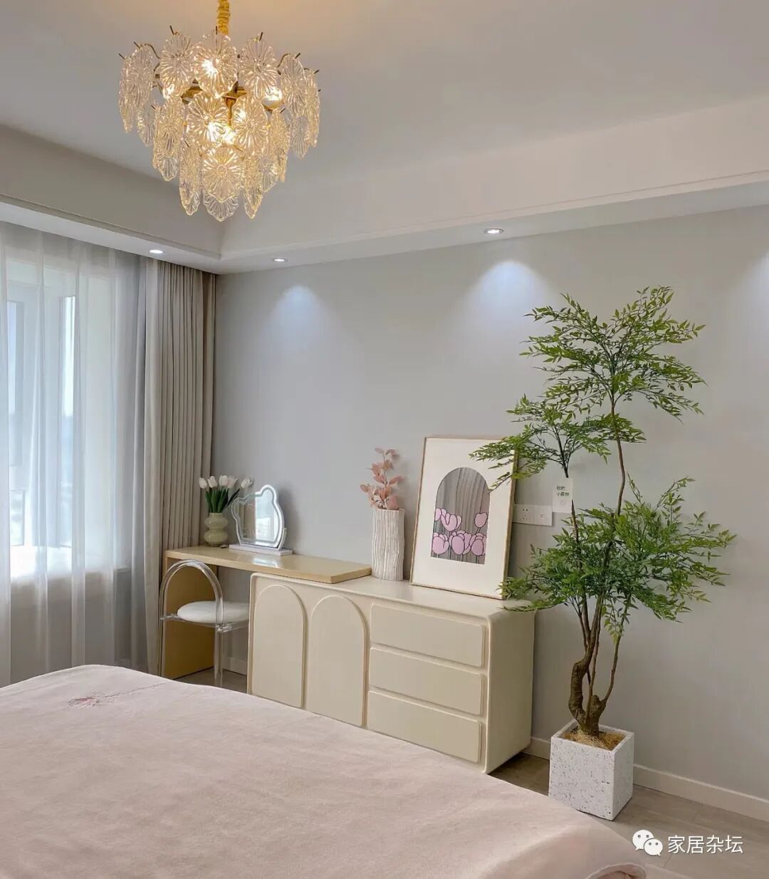 ②、建议大家可以在卧室简单养几株绿植,但是也不要太多。这样可以增加卧室的氛围,让卧室充满生活的气息。