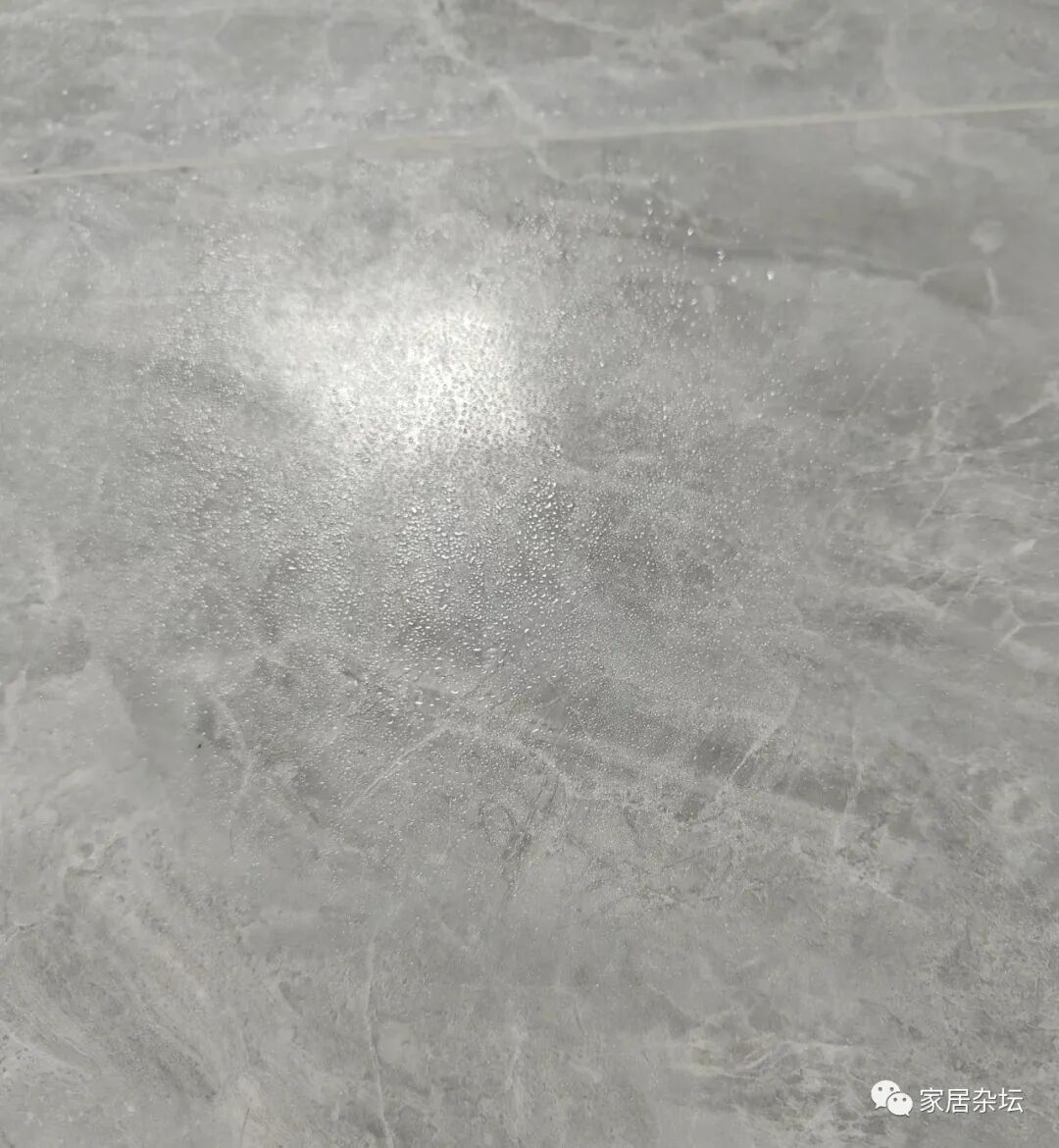 那么,就会出现一种情况:如果水蒸气比较大,在遇到这些低温的瓷砖以后,瓷砖的表面就形成了露珠。