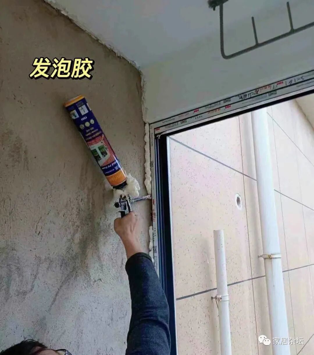 ②、窗户的发泡。窗框与墙体之间一般要留5毫米左右的缝隙,这个缝隙的作用就是来打发泡胶。打发泡胶,要打均匀饱满,不允许有断开、漏打。