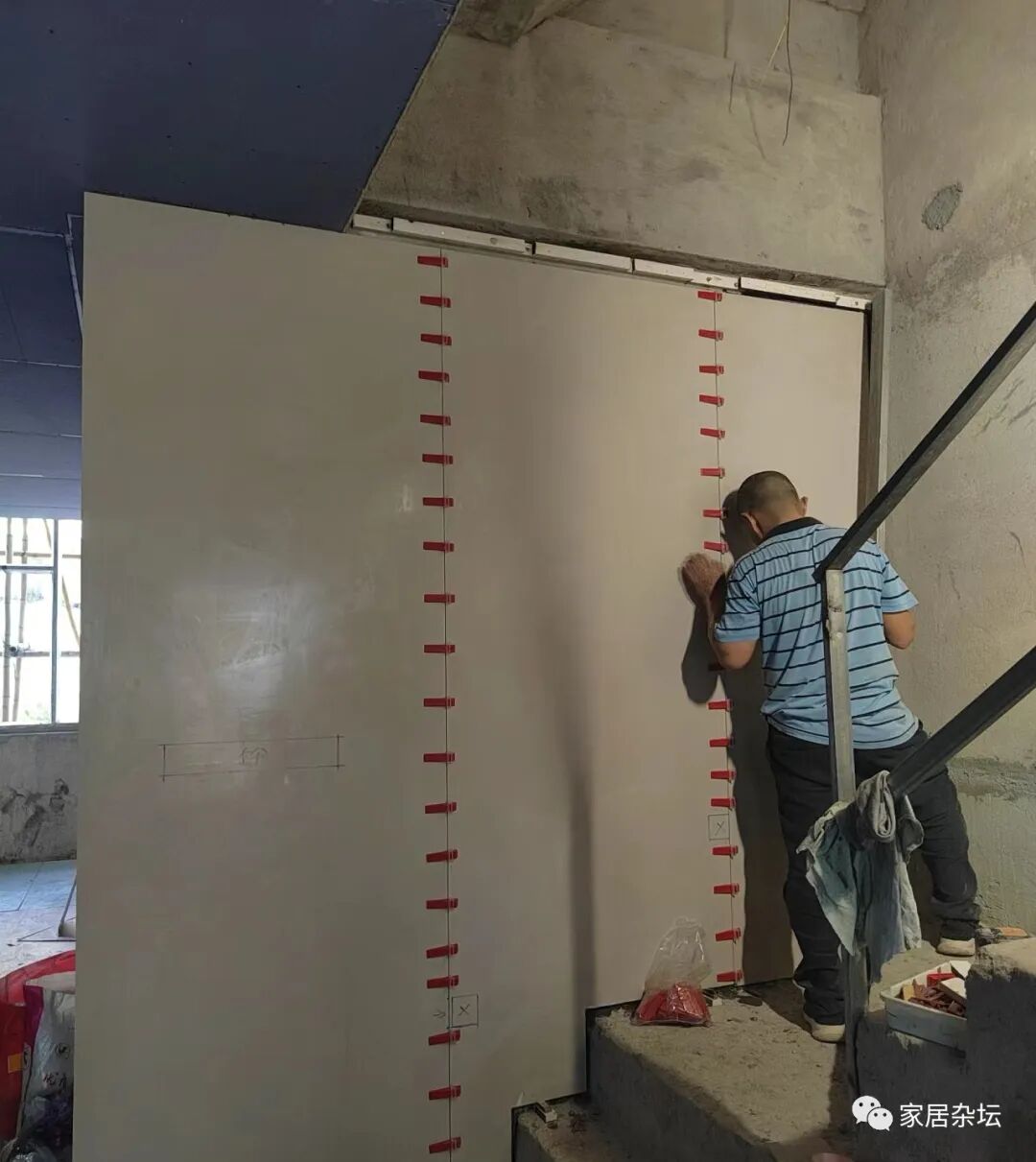 因为我们最终要实现一个平整的岩板墙面,不能够出现误差。