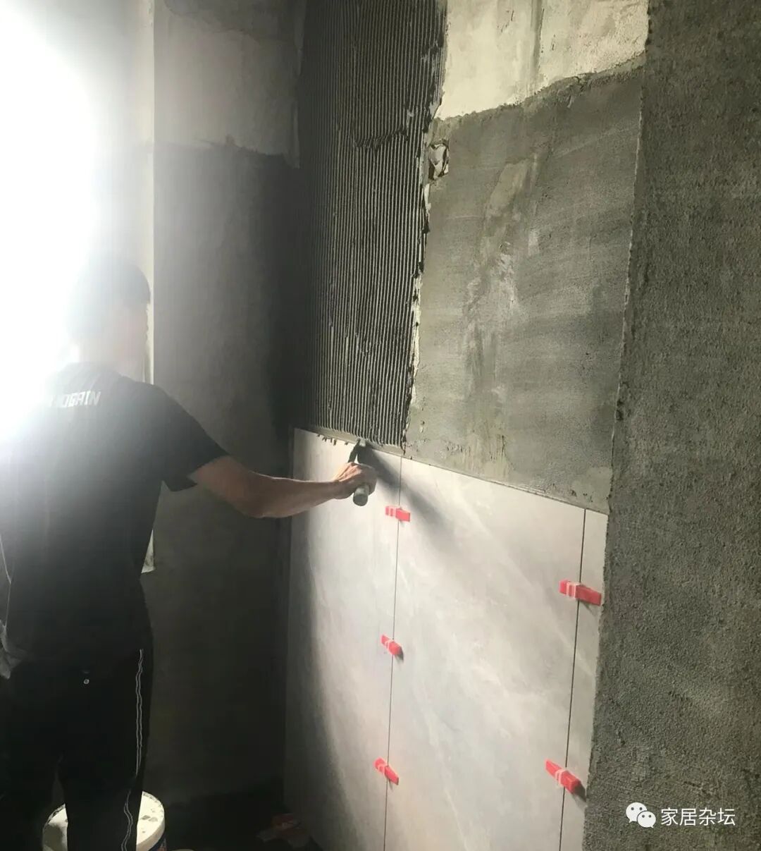 其实这一步就牵扯到了墙面的弹线以及岩板的加工:
